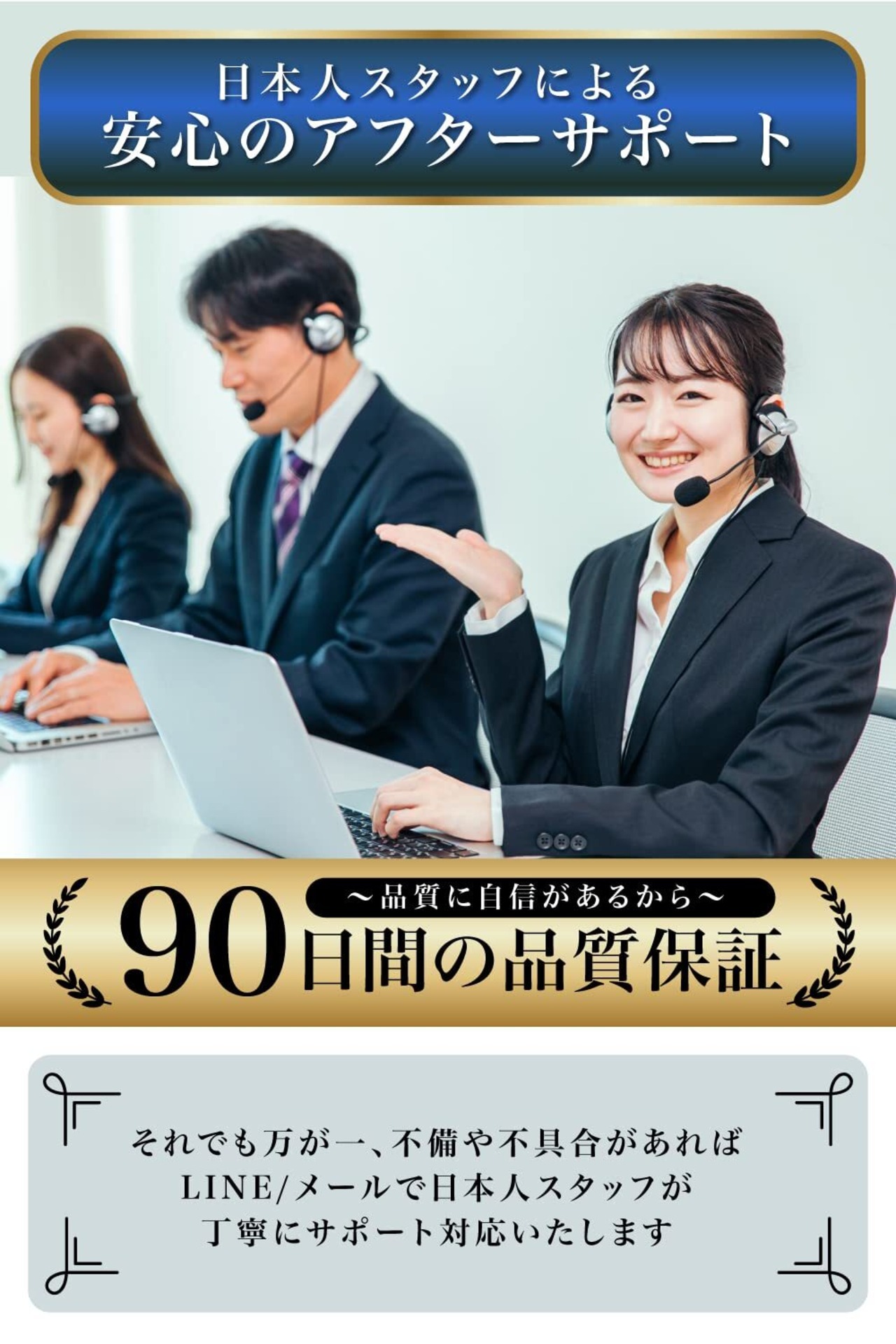 【安心の日本ブランド&90日保証】弊社では良いモノを届けたいというコンセプトに、商品開発をしております。日本人だからこそできる安心感と中間マージンを削った自助努力を行っております。当社製品は90日のメーカー保証がついており、期間内であれば一定の条件下で無料にて返品・交換が可能となっております。