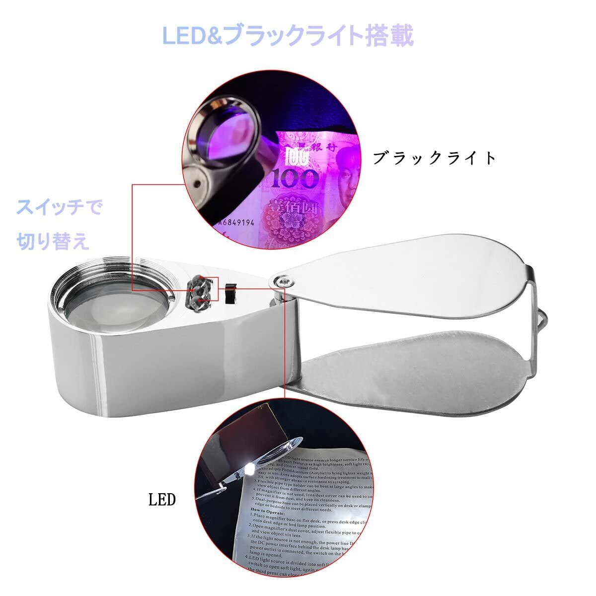 サムコス ジュエリールーペ【倍率40倍】宝石鑑定用 ミニ ルーペ LEDとUVライト付き 折り畳み 携帯ルーペ ジュエリールーペ
