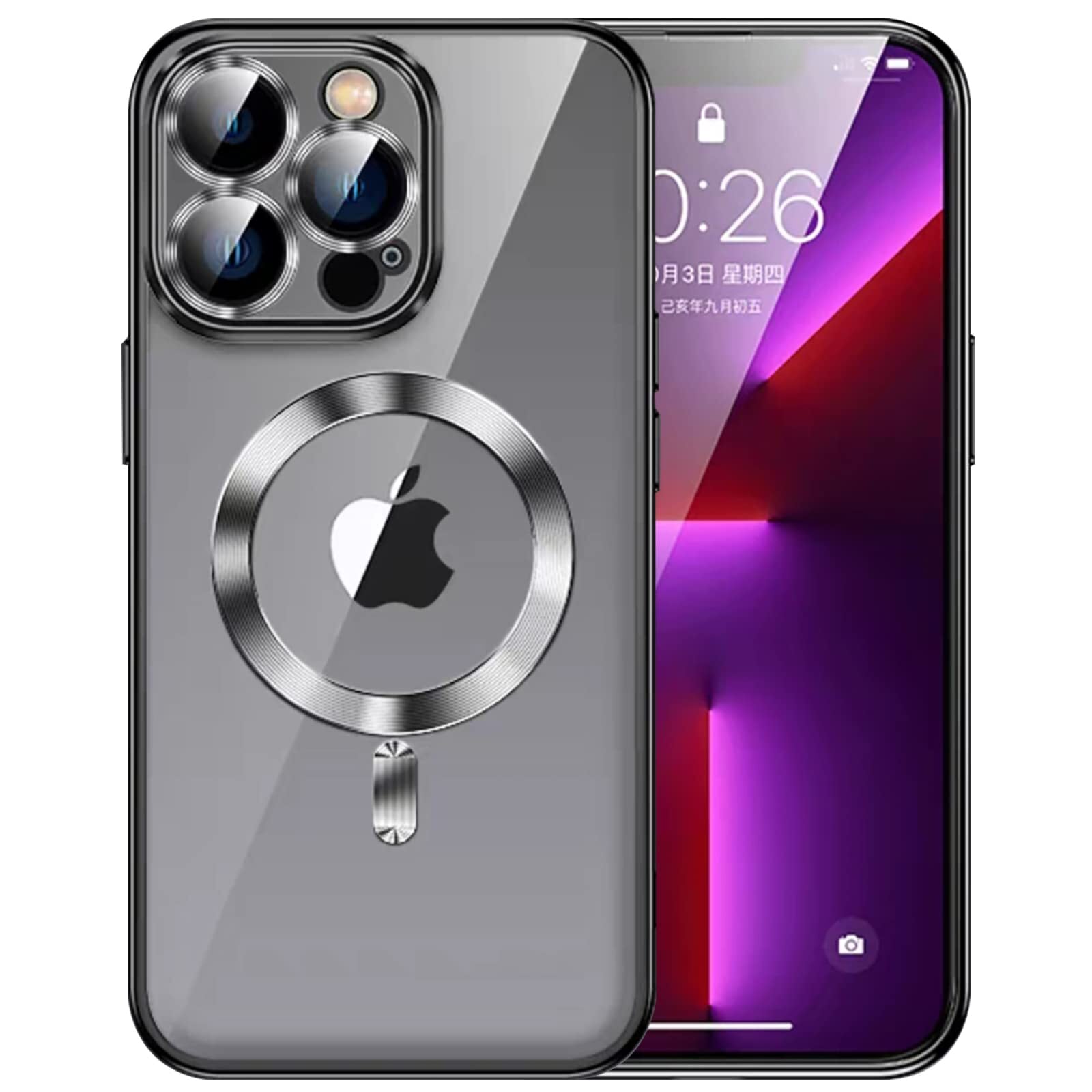 iyite iPhone 13 Pro Max ケース ハイブリッドケース HaloLock付き MagSafe対応 磁気充電 iphone13プロマックスケース アップグレードされた電気メッキの ソフトシェル 米軍MIL規格 SGS認証 衝撃保護 傷に強い背面 クリア 黄変しにくい ストラップホール付き 6.7インチ ブラック