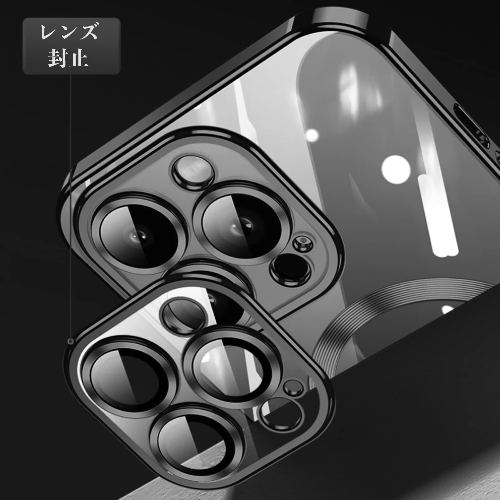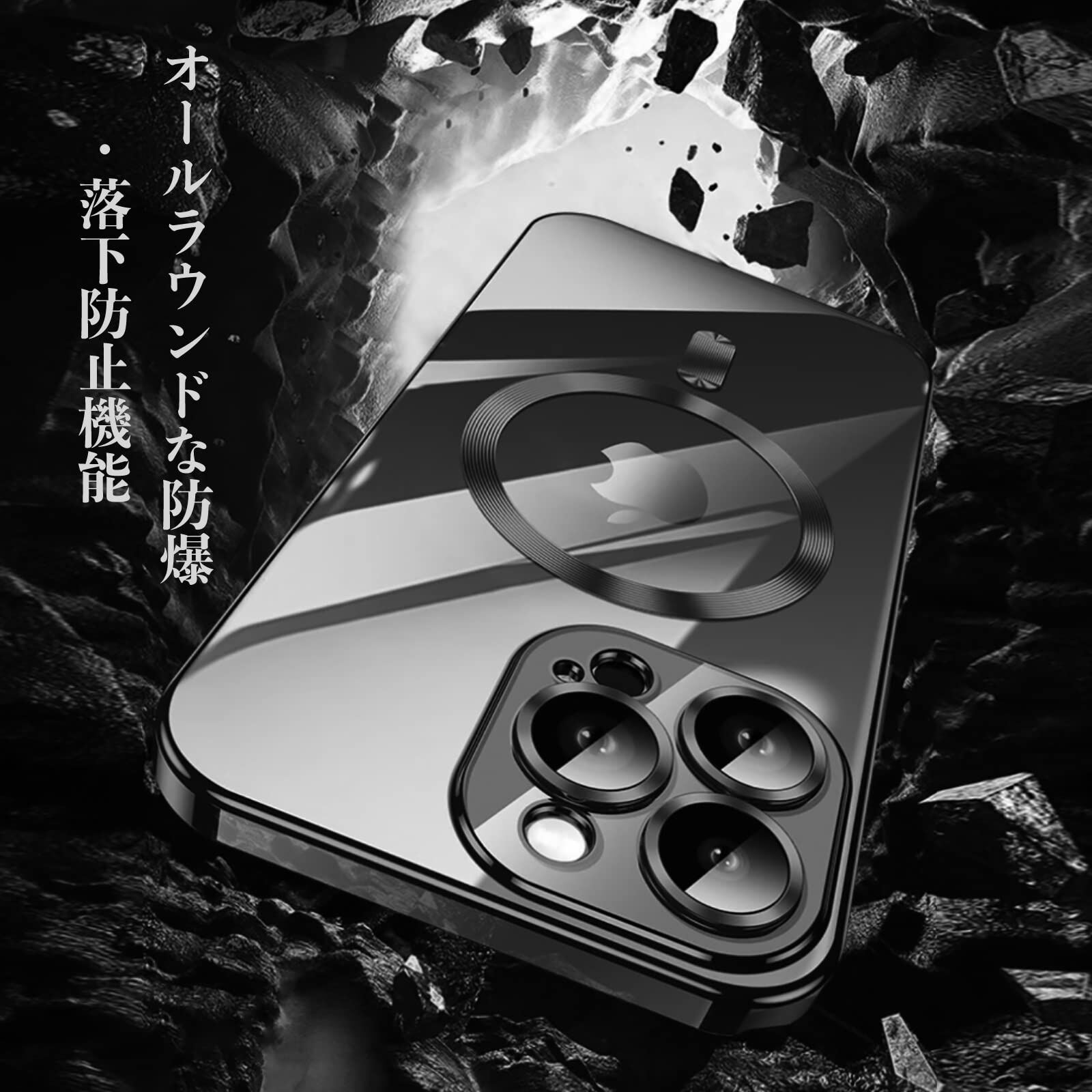 iyite iPhone 13 Pro Max ケース ハイブリッドケース HaloLock付き MagSafe対応 磁気充電 iphone13プロマックスケース アップグレードされた電気メッキの ソフトシェル 米軍MIL規格 SGS認証 衝撃保護 傷に強い背面 クリア 黄変しにくい ストラップホール付き 6.7インチ ブラック | BASE SHOP