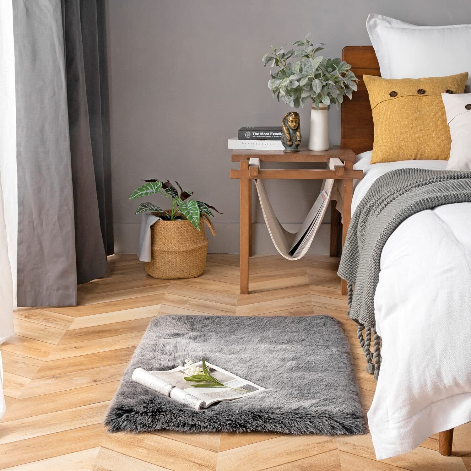 Phantoscope ラグマット カーペット ムートンマット 滑り止め付 柔らかい シープスキン 厚手 極厚毛足約5cm 手触り優しい ふわふわ 折り畳み 洗える 抗菌 防ダニ 北欧 キャンプ 冷房 床暖房対応 60×90cm ホワイティッシュチップ&ブラック | BASE SHOP