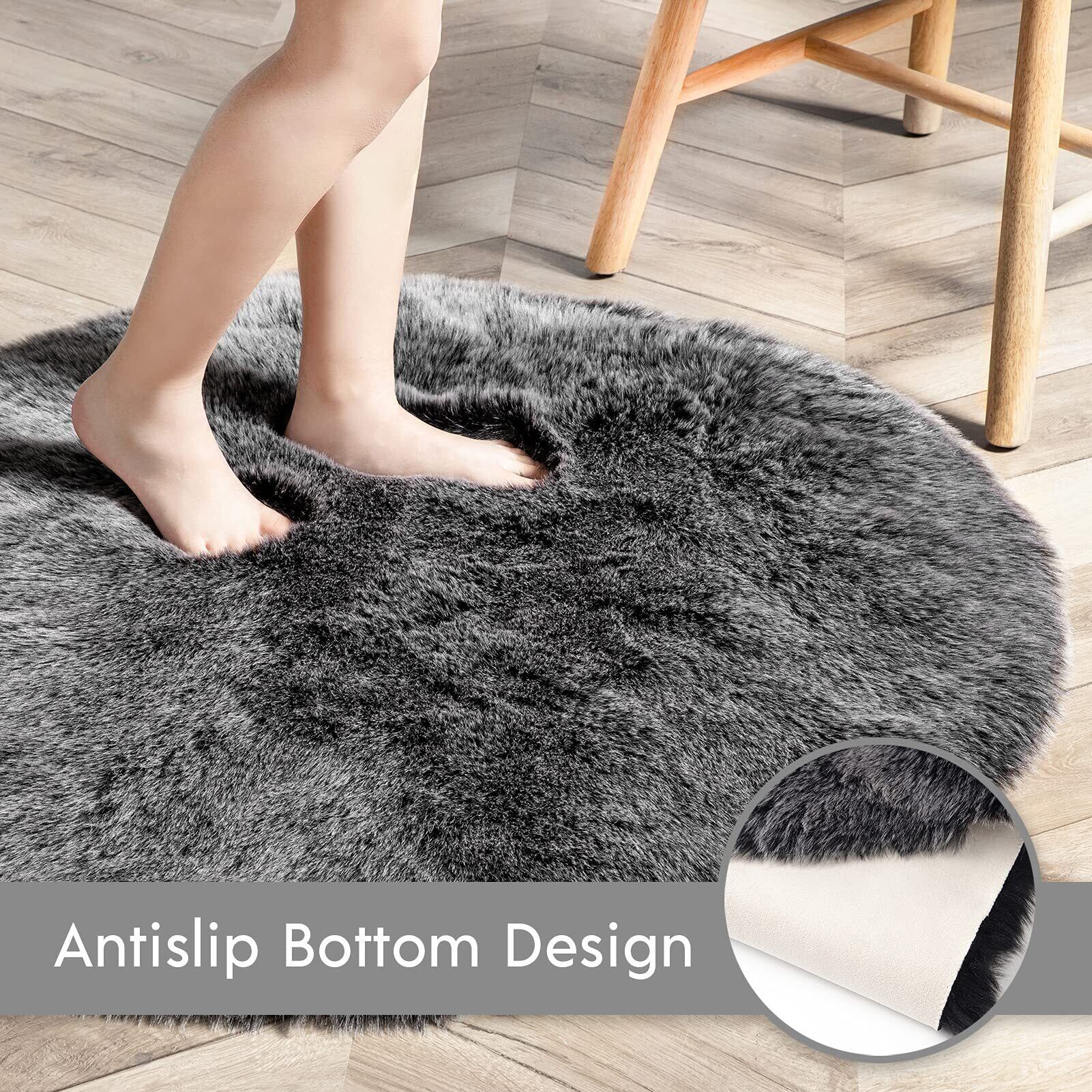 Phantoscope ラグマット カーペット ムートンマット 滑り止め付 柔らかい シープスキン 厚手 極厚毛足約5cm 手触り優しい ふわふわ 折り畳み 洗える 抗菌 防ダニ 北欧 キャンプ 冷房 床暖房対応 60×90cm ホワイティッシュチップ&ブラック