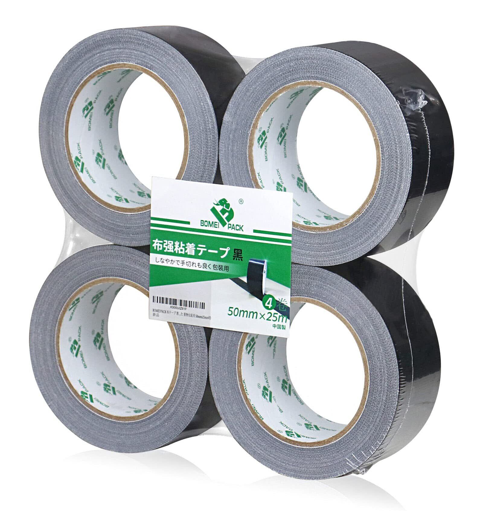 BOMEI PACK ガムテープ布黒ダクトテープ頑丈なパッキングテープ修理テープ50mmx25mパッキングテープ布4パック