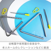 小学校や中学校の音楽授業、幼稚園や保育園などの音楽発表会はもちろん、老人ホームや地域イベントなどの演奏会などでお使いいただけるトライアングルです。