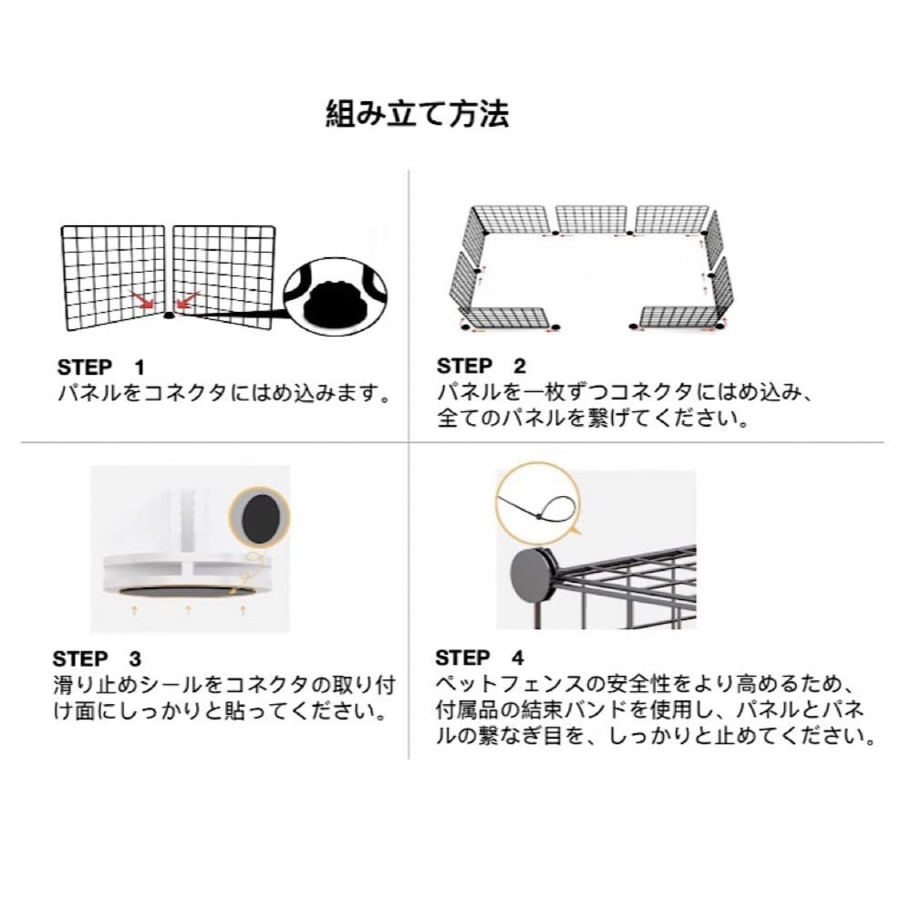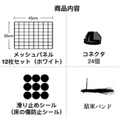 商品詳細 本体 金属製パネル:サイズ45×35cm、12枚; コネクタ:24個; 付属品 ハンマー、滑り止め シール、結束バンド;