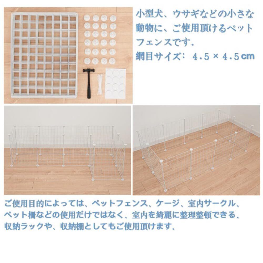 ENCOUNTER ペットフェンス ペットサークル ケージ 12枚セット 45×35cm 小型犬 小動物 犬 うさぎ ペット 室内用 透明 サークル 犬 室内 メッシュパネル ワイヤーサークル サークルフェンス ペットケージ 大きいサイズ レイアウト自由 ペット柵 脱出防止柵 多用途 組立簡単 ジョイント式 軽量 ホワイト 網目通常タイプ | BASE SHOP