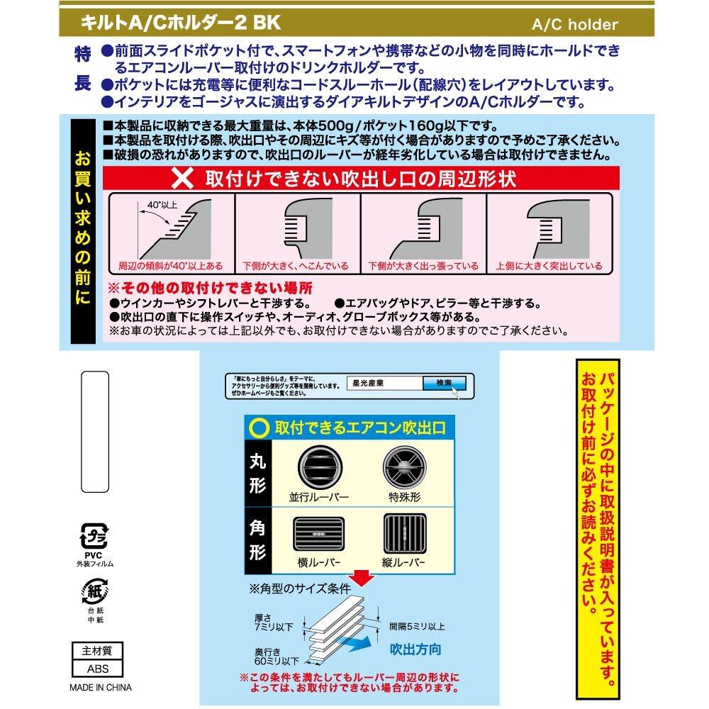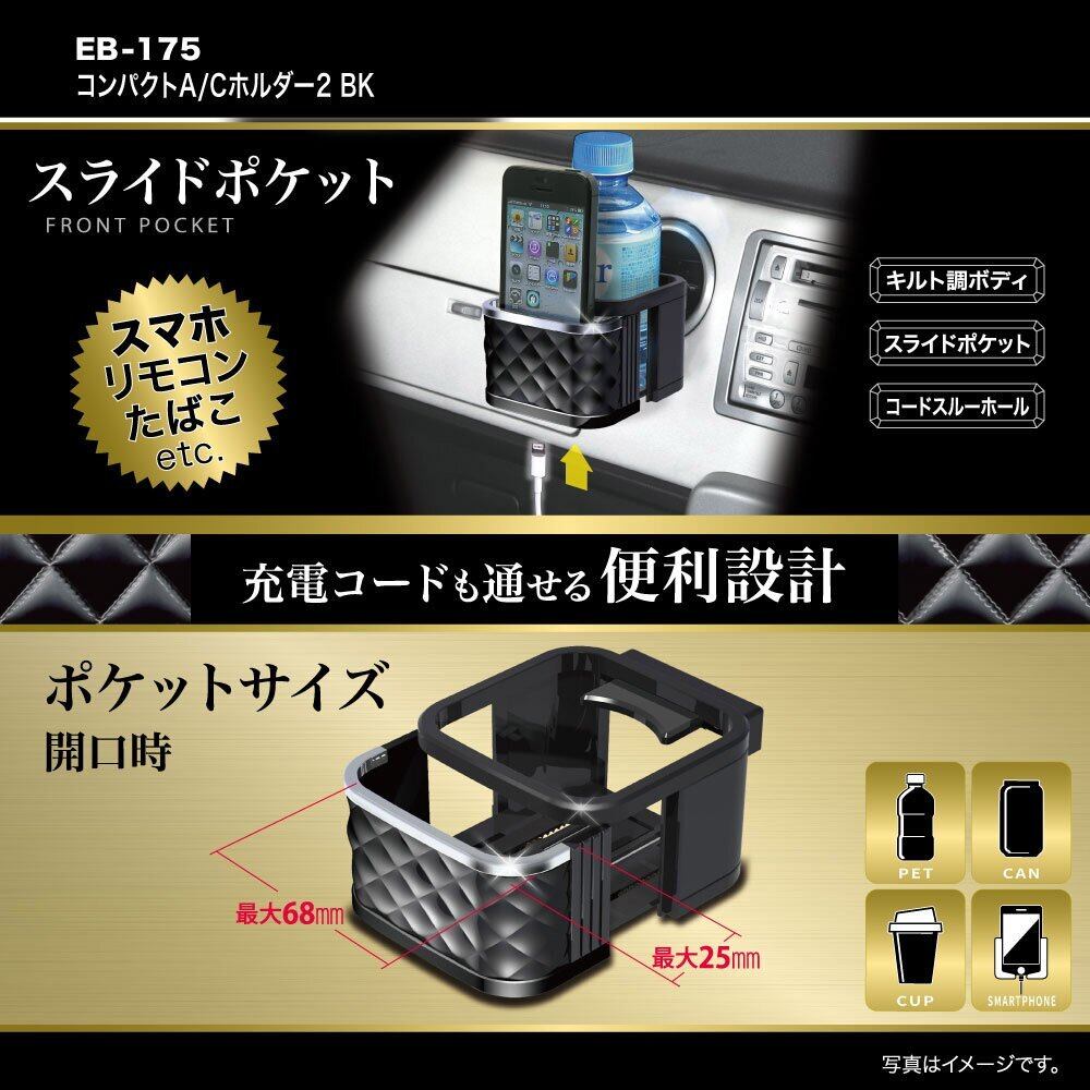 星光産業 EXEA 車内用品 ドリンクホルダー キルトA/Cホルダー EB-175 ブラック
