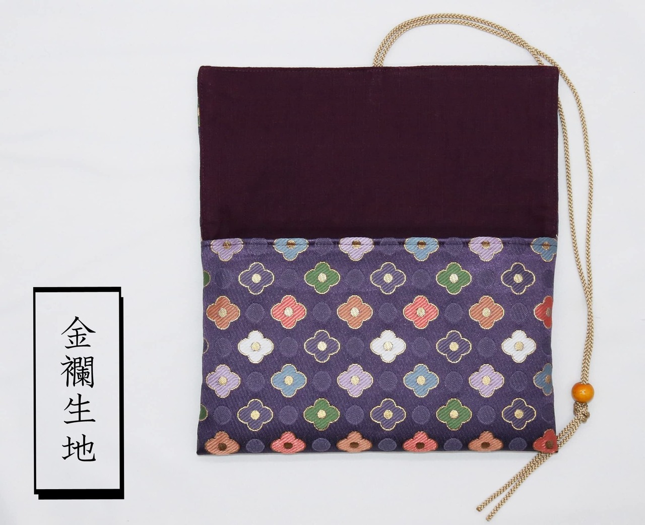 金襴 西陣織 御朱印帳入れ 御朱印帳袋 御朱印帳ケース 御朱印帳カバー 22.5×13.5 紐 日本製 標準サイズ (茄子紺)