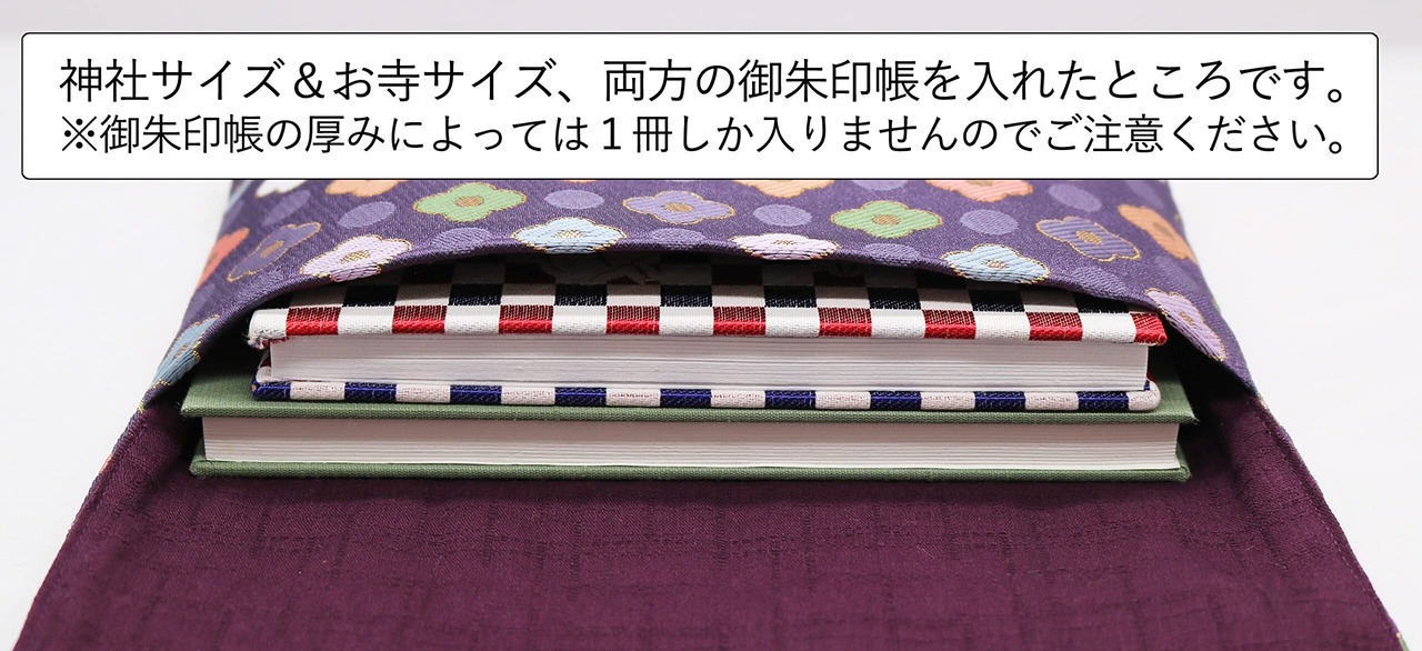 京都西陣織の金襴生地に伝統的な柄を合わせた御朱印帳入れです。裏地には和風ドビー生地(綿)を使用しています。