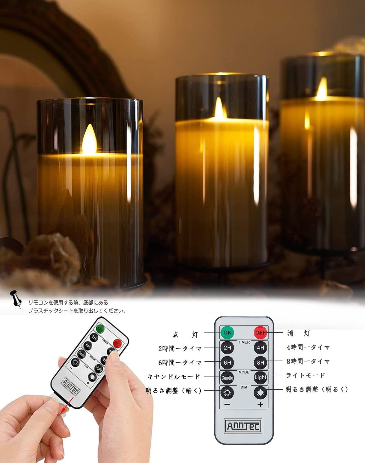 AnnTec LEDキャンドルライト ledグラス ブラック ロウソク 本物の炎のようにゆらめく3点セット 暖色光 火を使わない ゆらゆら揺れる 安全 省エネ 専用リモコン付き 明るさ調整 USB充電式 LEDキャンドル | BASE SHOP