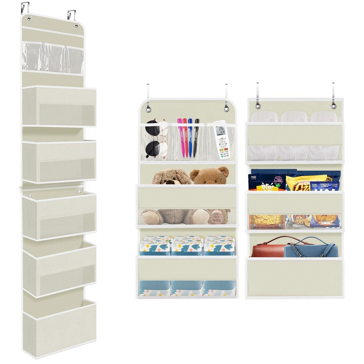 HASONA ウォールポケット 6段 ドア掛け 壁掛け 収納ポケット 分割可能 スイングプルーフ 頑丈 大容量 不織布 おむつ/タオル/入浴剤/化粧品/おもちゃなどの収納に最適 フック4個付き (ベージュ) | BASE SHOP