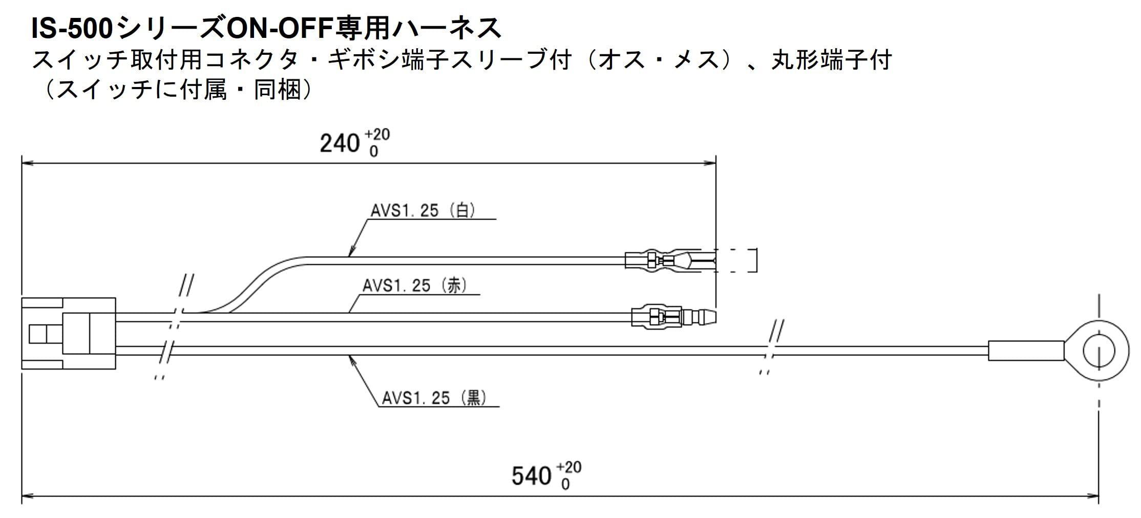 専用ハーネス付属、ギボシ・丸端子付きで配線が簡単です。