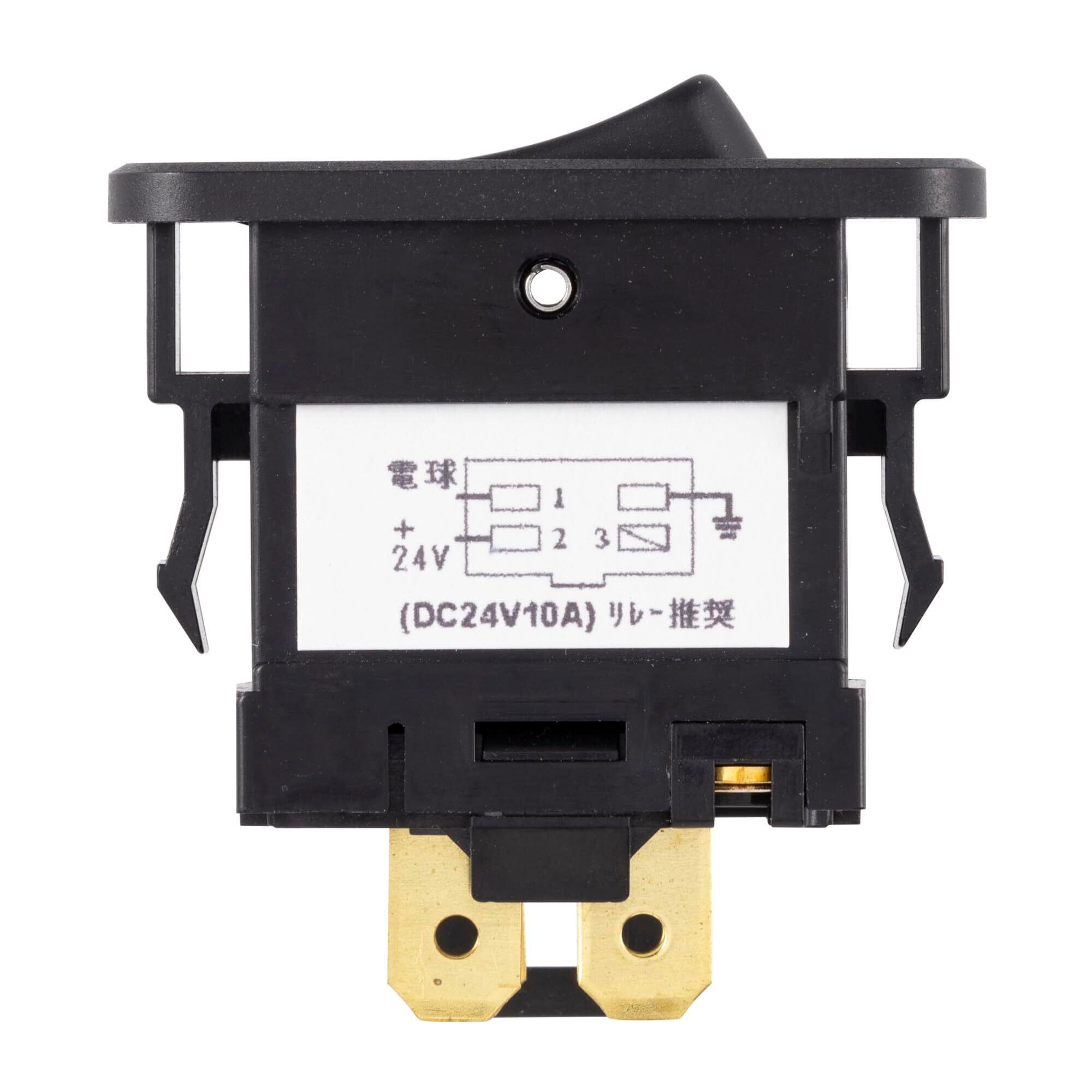 トラックキャブ内のスイッチパネルへ取付可能な架装用スイッチです。DC24V/DC12V対応。ON時にスイッチ内部のLEDが点灯します。