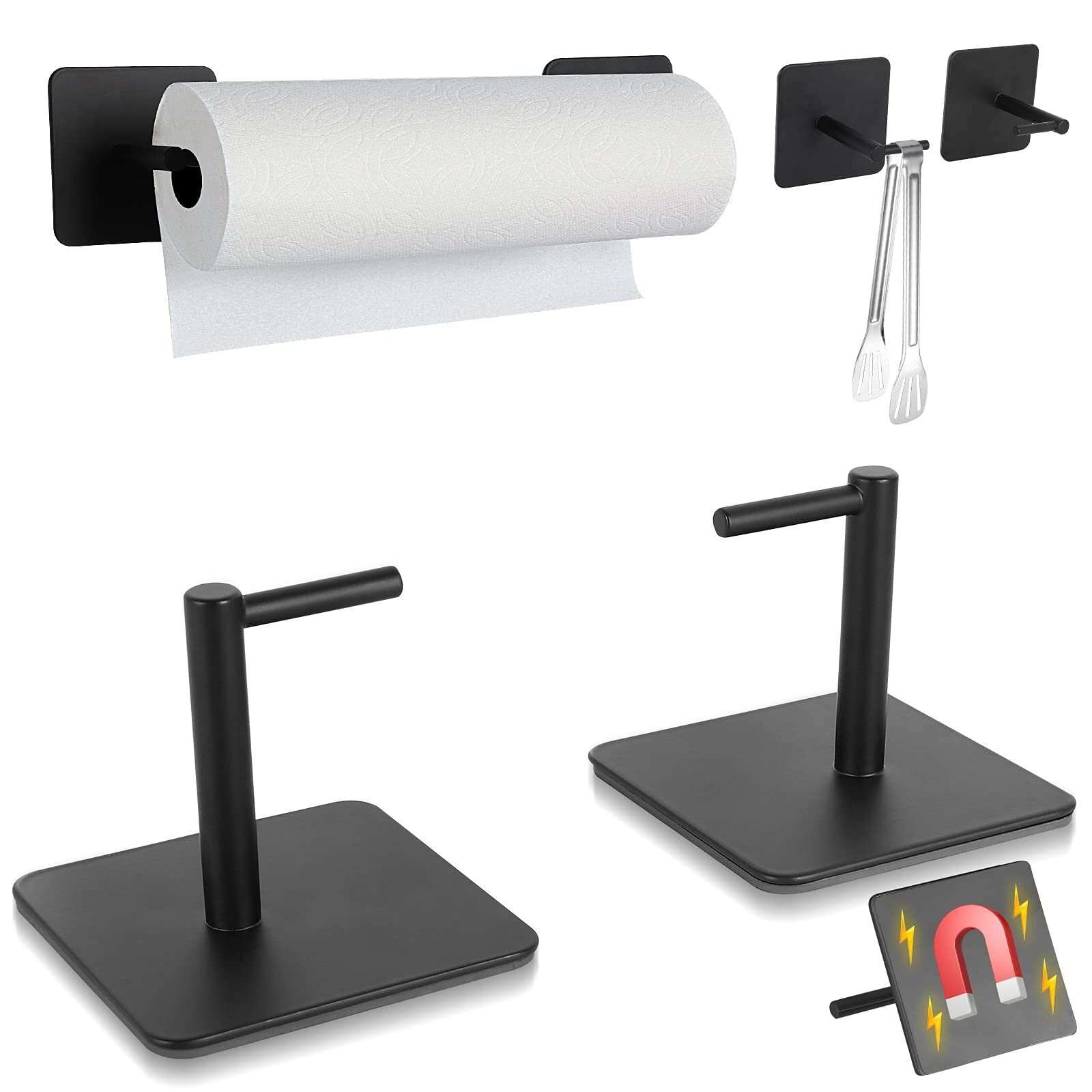 Wowfill キッチンペーパーホルダー マグネット きっちんぺーぱー ホルダー ペーパータオル ホルダー 冷蔵庫 ステンレス キッチン収納 片手でカット 調節可能 (2個-マグネット-黒) | BASE SHOP