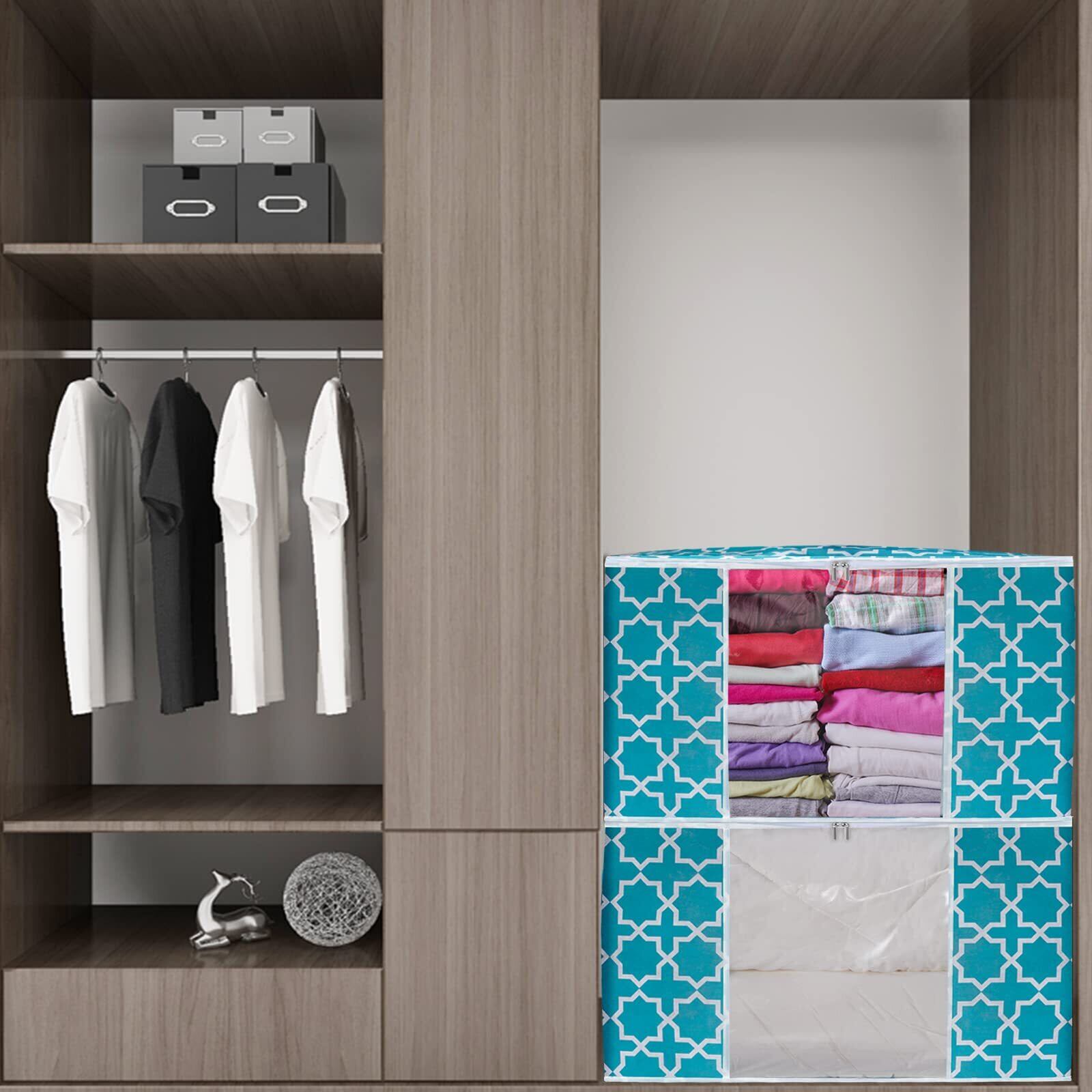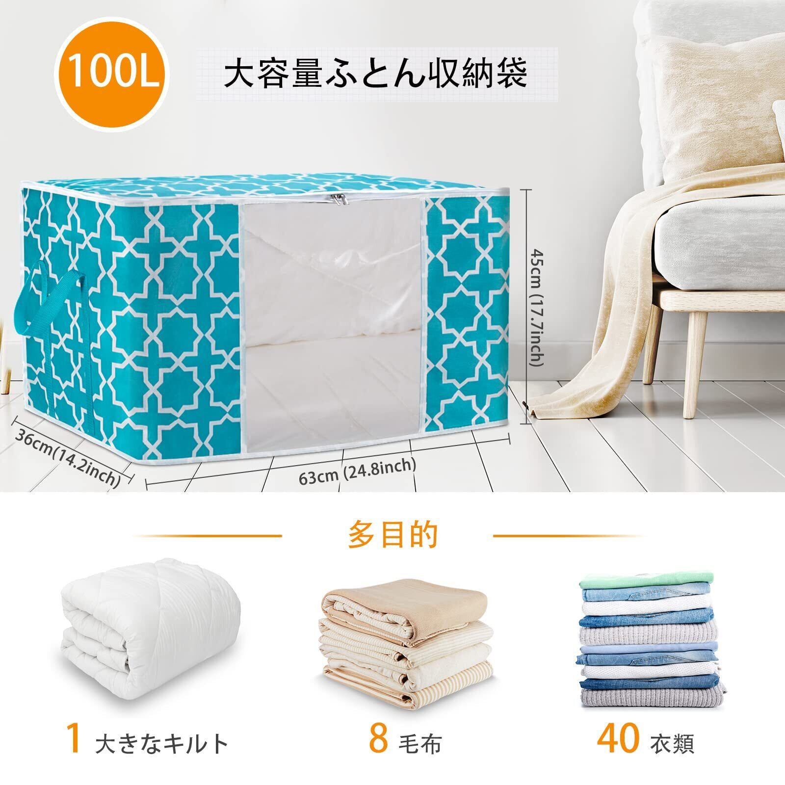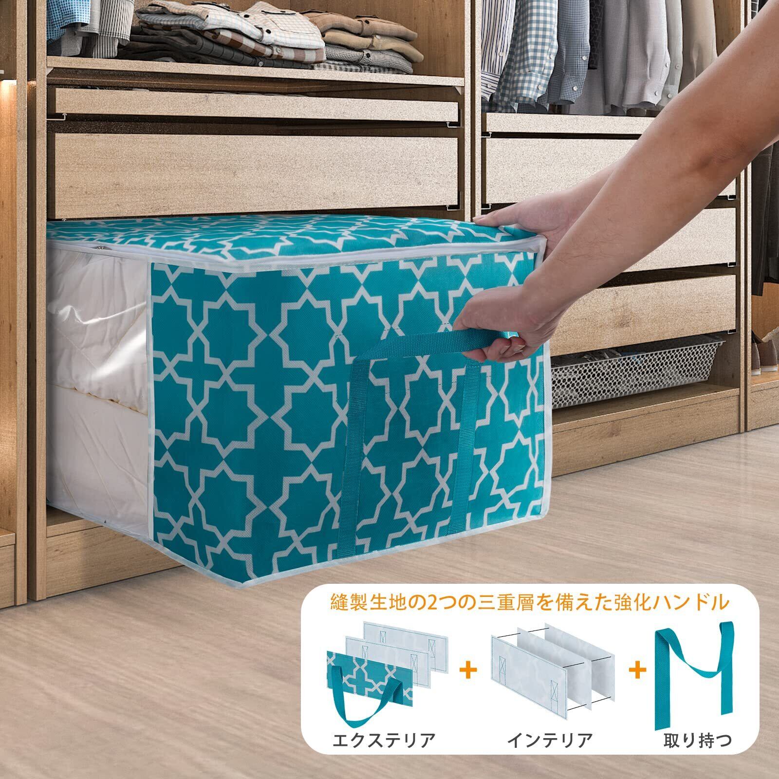 LHZK 布団収納袋 大容量 3点セット 持ち手とファスナー付き 布団袋 折りたたみ式 透明窓付き 羽毛布団 収納袋 衣類 毛布 収納 掛け布団 敷布団の収納に適しています 通気性が良い 省スペース 不織布製 無臭 防塵 防虫(63*36*45cm, ブルー) | BASE SHOP