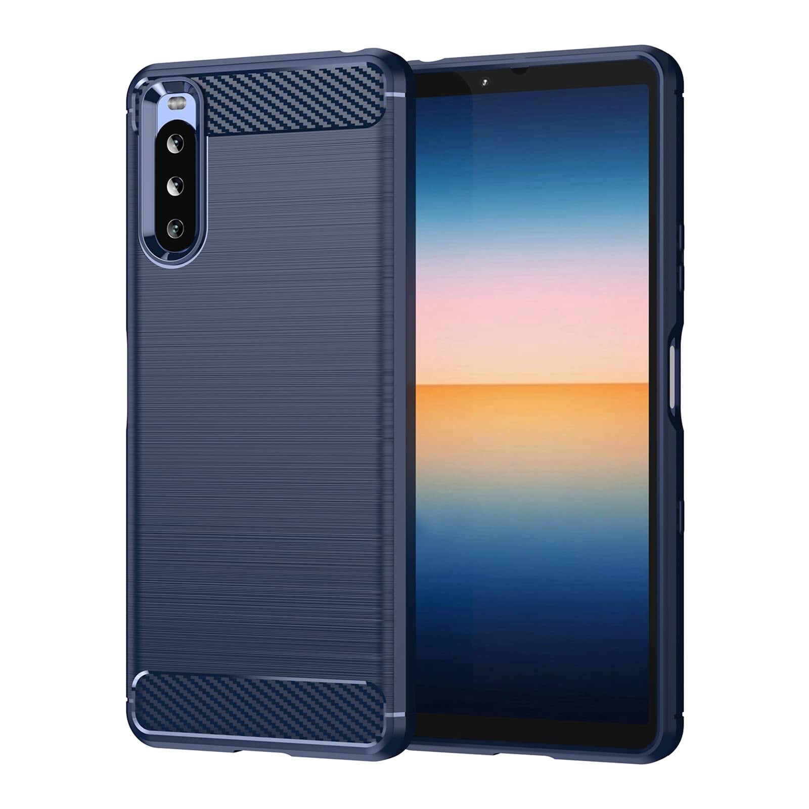 WangSiwe Sony Xperia10 iiiケースSO-52Bカバー SOG04対応炭素繊維TPU携帯ケース薄型ソフトケース指紋防止 衝撃吸収 スマホケース xperia10iii ソフト 弾力性があCase多機能保護カバー (ブルー, Xperia10-III)