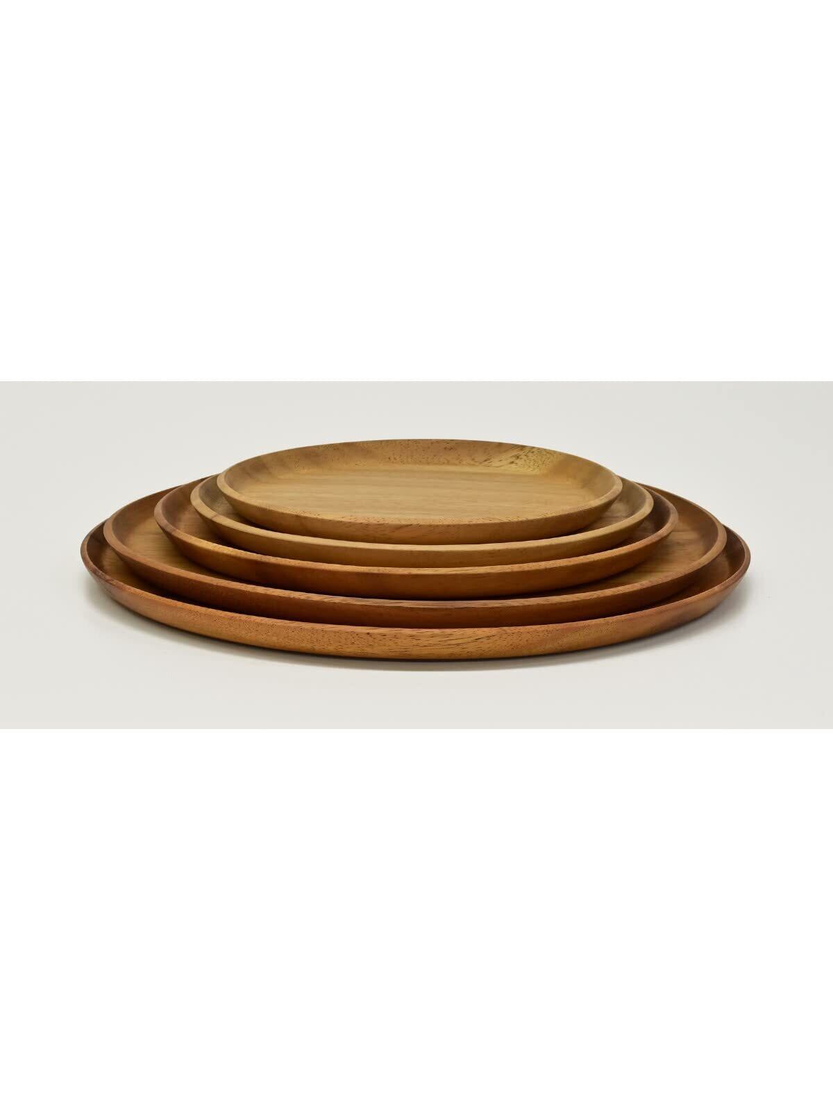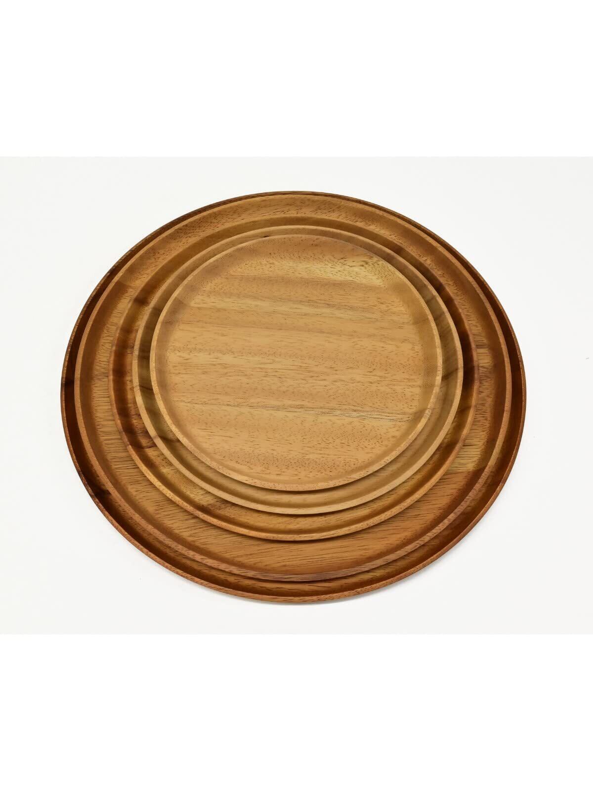 ●天然のアカシアの木を丁寧に加工し、表面は環境に優しいオイルフィニッシュで美しく仕上げた薄型のラウンドプレートです。