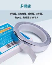 【材質】:アルミテープ 導電性 両面導電性のアルミホイルテープ、アルミホイルに導電性接着剤の構成が両面導電性を確保しています。粘着剤:強い粘着タイプのアクリル系接着剤を使用しており、安定した粘着性能を持っています。