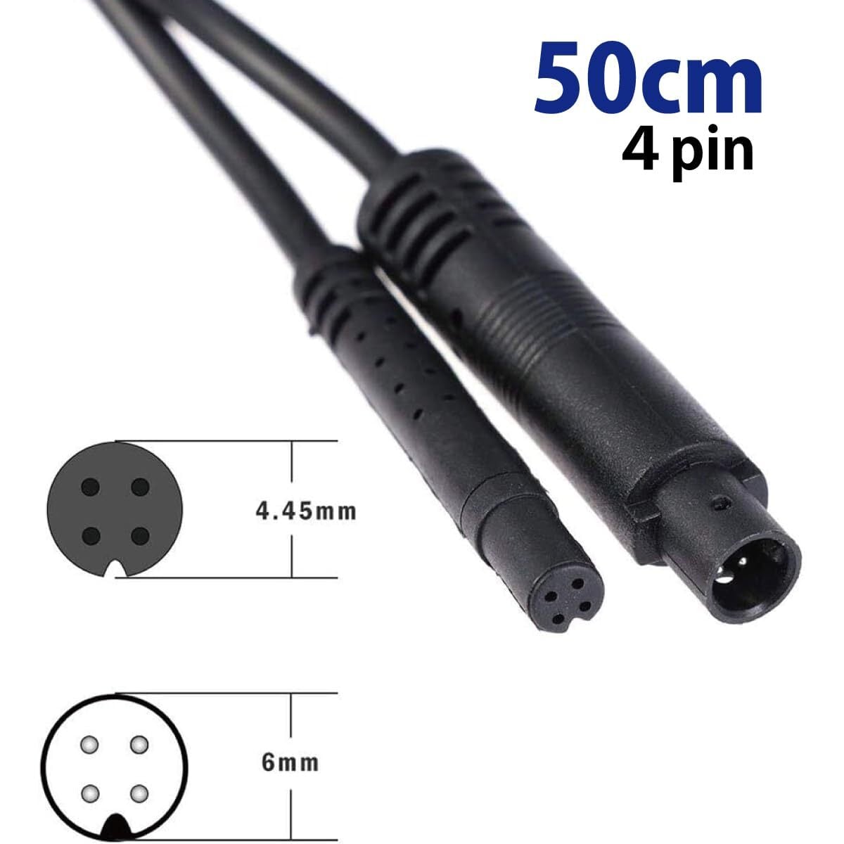 ドライブレコーダー 4pin 延長ケーブル 4ピン 50cm 0.5m 短 リアビューカメラ バックカメラ 24v/12v車 バックカメラ ケーブル 防水 (ブラック) 短い 50cm