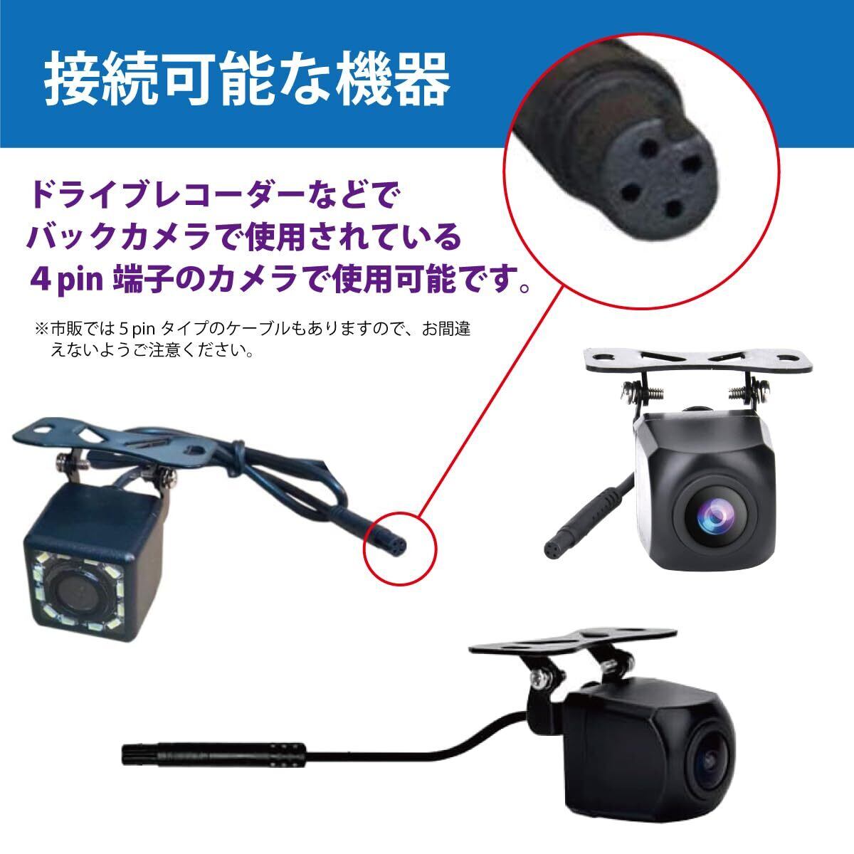 主にドライブレコーダーのリアカメラ(リアビューカメラ)用として多く使用されていますが、ドライブレコーダーの機種によってはフロントカメラでも使用されています。4pinタイプであれば汎用可能です。