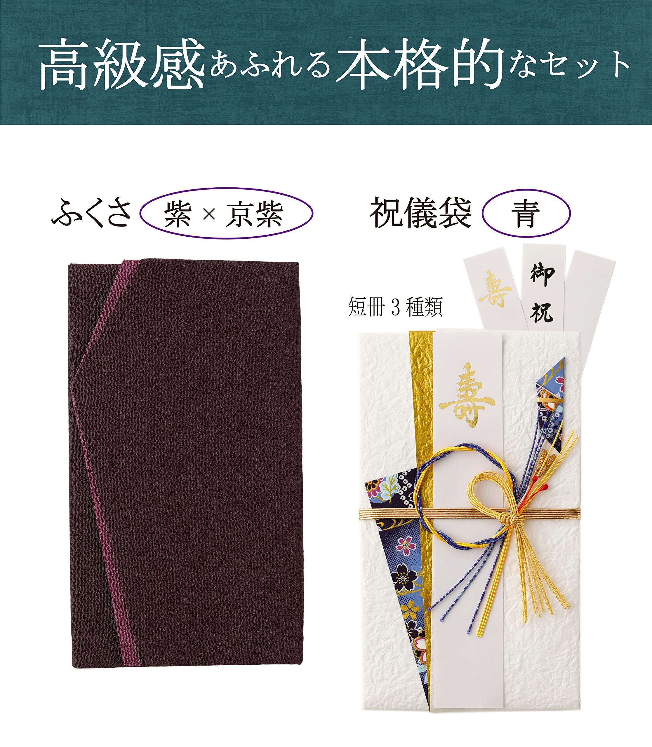 「ふくさ(紫×京紫)」と「青系のご祝儀袋」のセットです。
