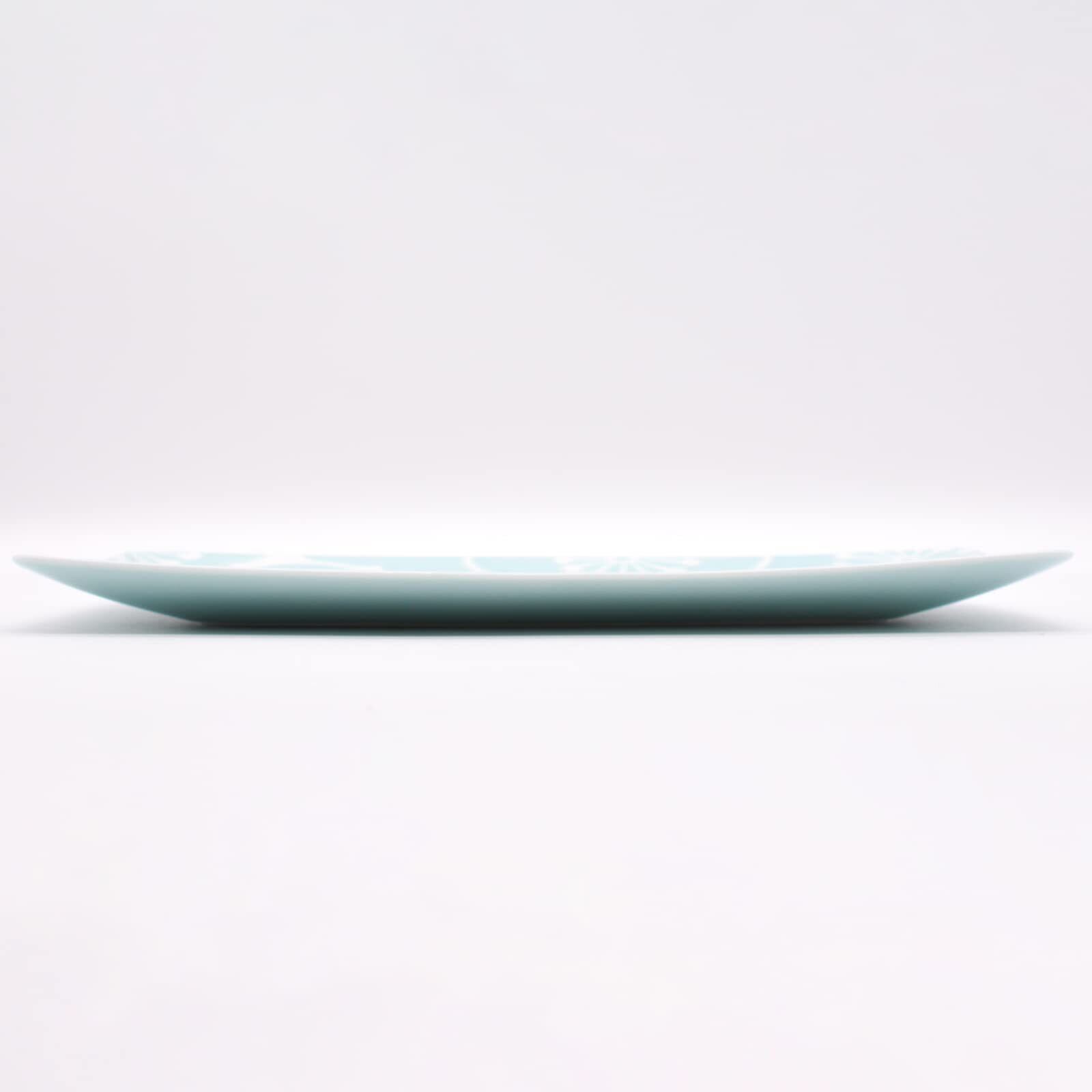 波佐見焼 「 はふり 」 長皿 長角皿 焼き物皿 径約25×13.5cm ブルー 梅 18087