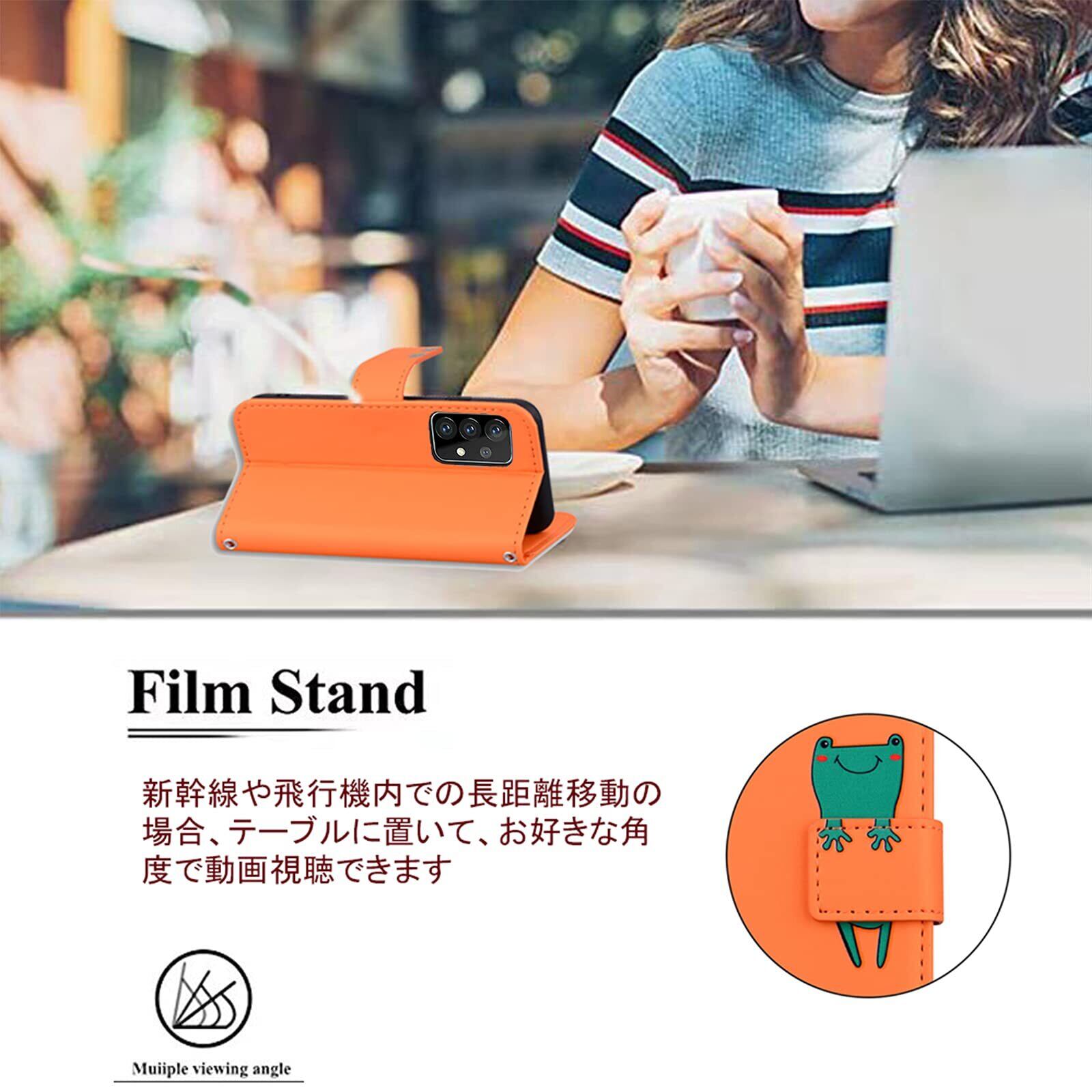 Galaxy A53 5G ケース手帳型 docomo SCG15 ケース サムスン ギャラクシーA53 5G ケース手帳 SC-53C カバー サムスン ギャラクシーA53 5G カバー Sumsung galaxy SCG15 ケース手帳 galaxy A53 case 手帳型ケース SC-53C スマホケース 携帯ケース 携帯カバー 肌触り良いレザー 柔らかいTPUケース カード収納 財布型 ベルトマグネット スタンド機能 カエル かわいい 動物柄 薄型 防水 ノート型 人気 おしゃれ 男女兼用 (Sumsung Galaxy A53 5G SC-53C SCG15 対応) オレンジ