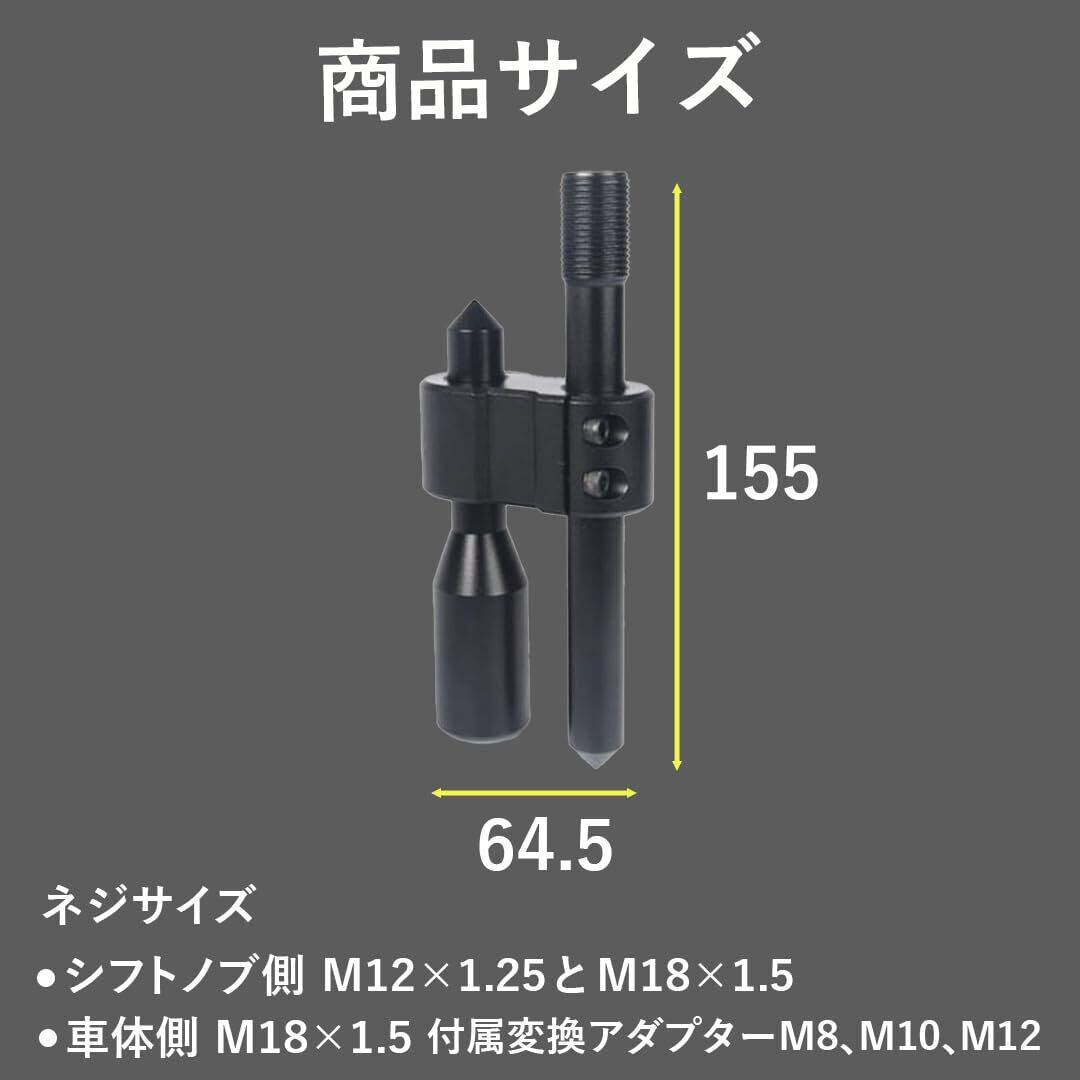 【商品詳細】シフトノブ取付部ネジサイズ:M12x1.25/M18×1.5・変換アダプター8mm、10mm、12mm付属・本体サイズ155mmx64.5mm