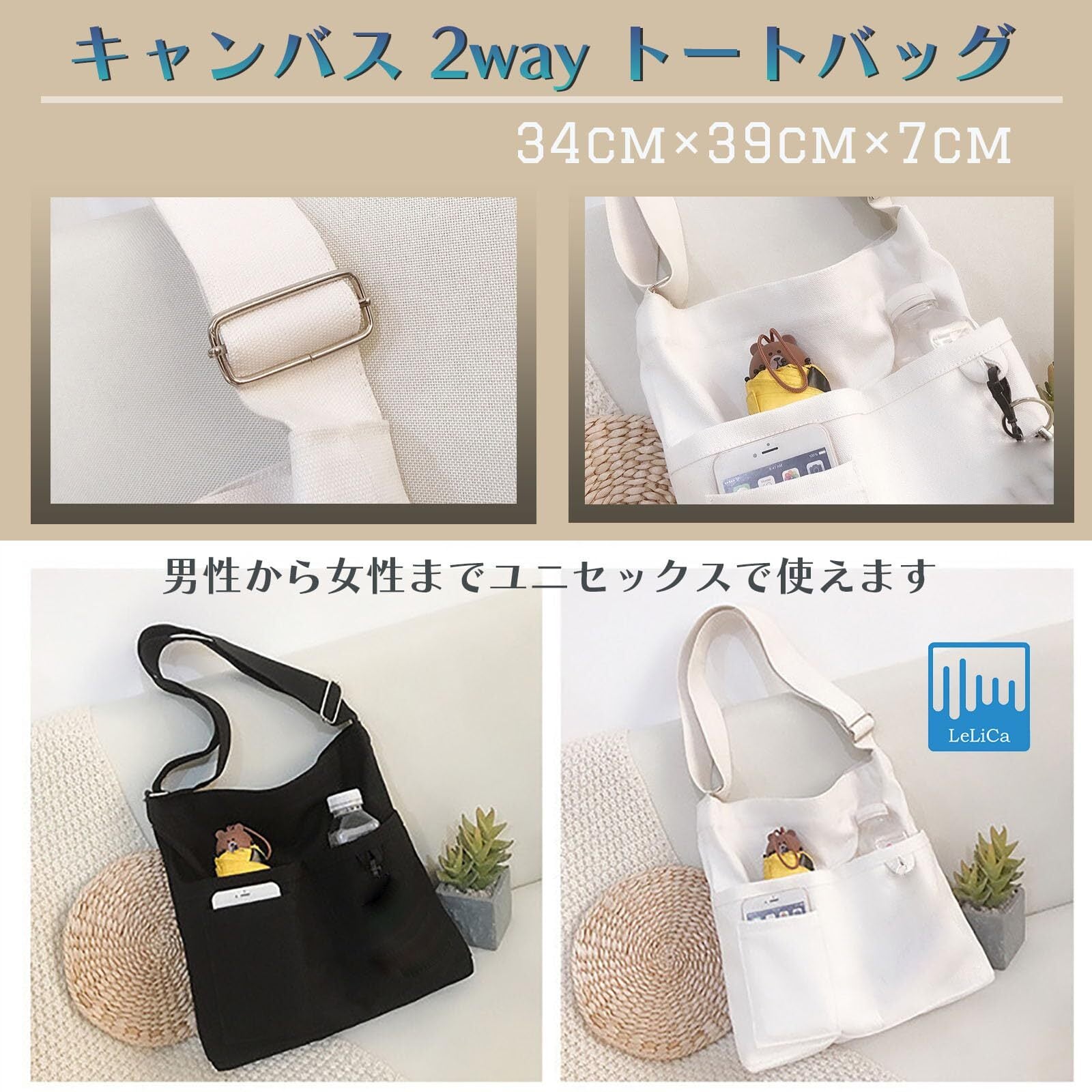 [レリカ] キャンバス 2way トートバッグ 帆布 ショルダー 大容量 a4 斜め掛け 通勤 通学 軽量 バッグ レディース