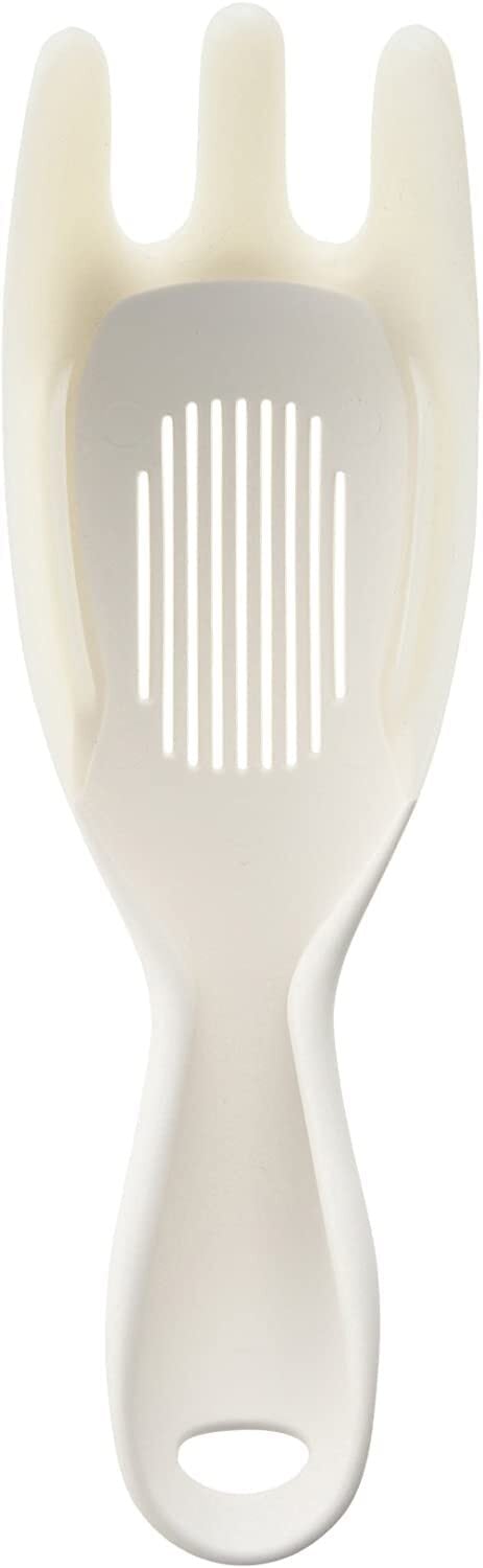【使い方のポイント】「1」お米が全部使るくらいに水を入れ、やわらかい先端部分で軽く1~2回かき混ぜる 「2」釜の縁に取っ手の凹みをそわせるように入れて、中央のスリット部分を使って素早く水を切る。※あまり勢いよく水を入れるとあふれてしまうことがあるのでご注意ください。 「3」水がない状態で20回程度かき回す 「4」水を入れてひと回しする 「5」水を捨てる