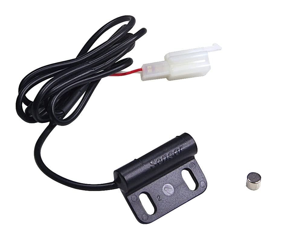 メーターギヤのない車両など、ワイヤーの回転数が取れない車両に装着するために、 使用する速度センサーキットです。 車輪に付けたマグネットの磁力で、直接車輪の回転を読み取り、メーター本体に送ります。6Φの円筒型マグネットは、ブレーキディスク固定用の ヘキサゴンボルトの頭にピッタリ収まります。 本製品は非防水カプラーを使用しております。対応機種は以下の通りです。ACE-S 対応機種ACE-153・ACE-1600・ACE-2802・ACE-2802CP・ACE-2953・ACE-3803・ACE-3853L/H ACE-3963・ACE-5652・ACE-7652・MD052-253・MD052-253CP・MD052-353・MD052-353CP