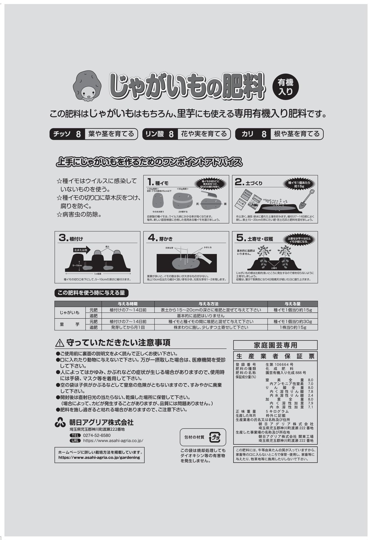 朝日アグリア 肥料 じゃがいも 有機 じゃがいもの肥料 5kg じゃがいも・里芋に使える有機入り肥料