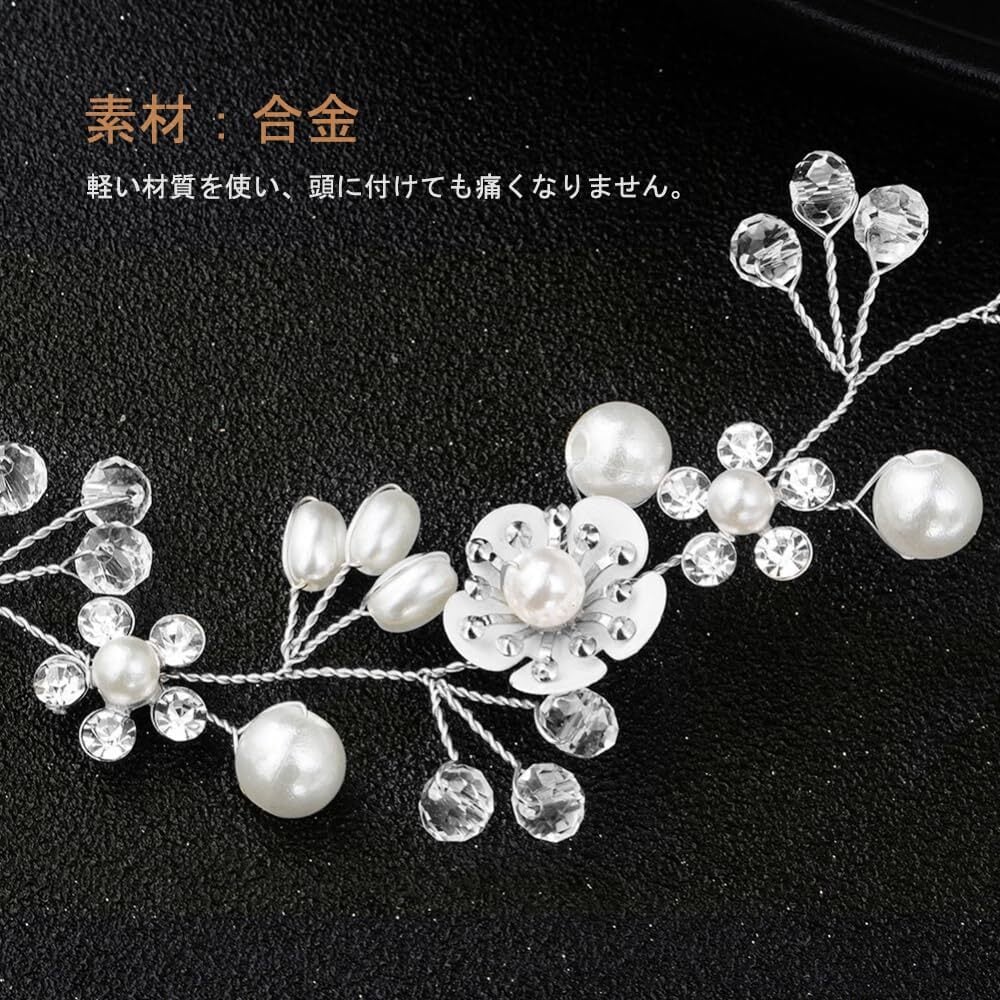 サムコス 髪飾り 花 パール 花かんむり リボン ホワイト ヘッドドレス クリスタルビーズ 花冠 ヘアアクセサリー 結婚式 発表会 披露宴 卒業式 パーティー ダンス 和装 撮影 写真 子供 大人用 (A,シルバー) | BASE SHOP
