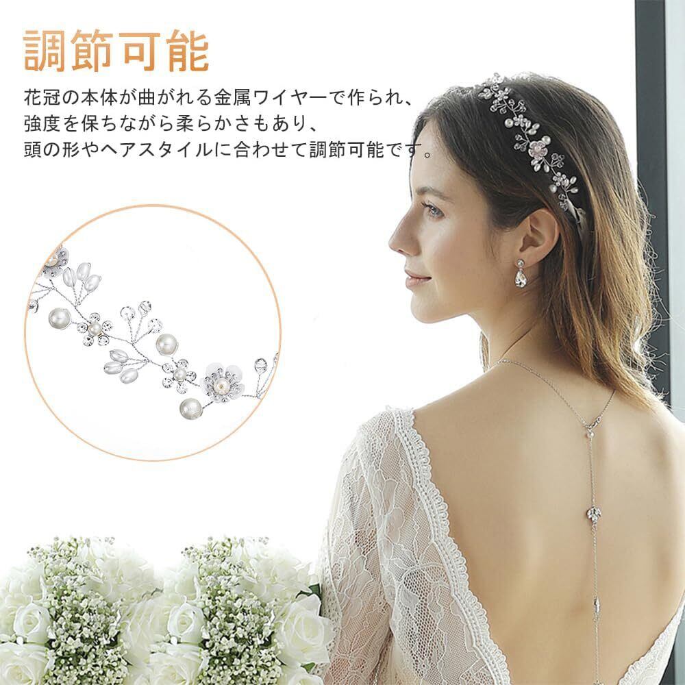 調節可能:花冠の本体が曲がれる金属ワイヤーで作られ、強度を保ちながら柔らかさもあり、頭の形やヘアスタイルに合わせて調節可能です。