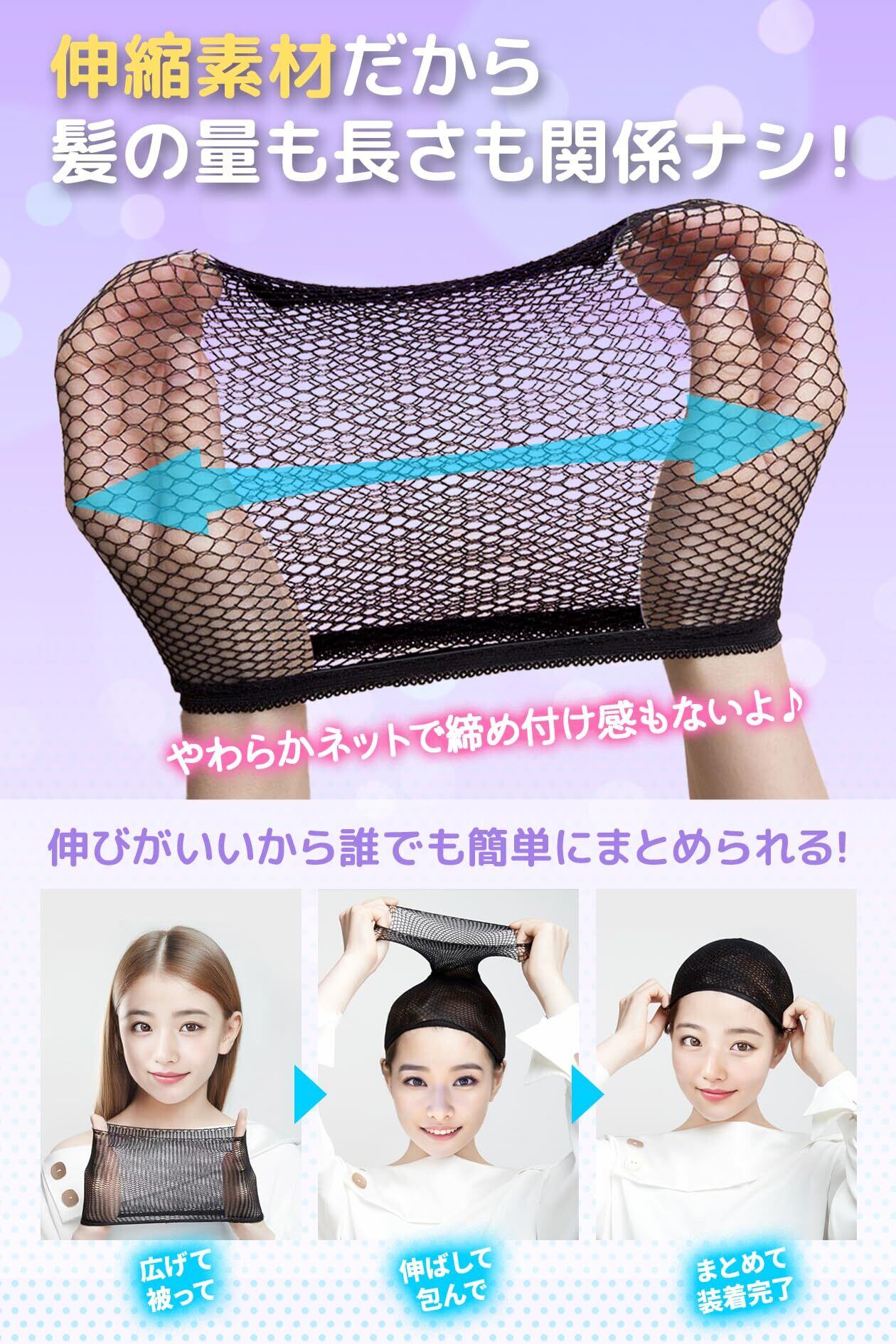 ウィッグネット 3枚セット ヘアネット 黒 ウィッグキャップ ウィッグ専用ネット メッシュ フリーサイズ ウィッグ用小物 スタイリング用品セット
