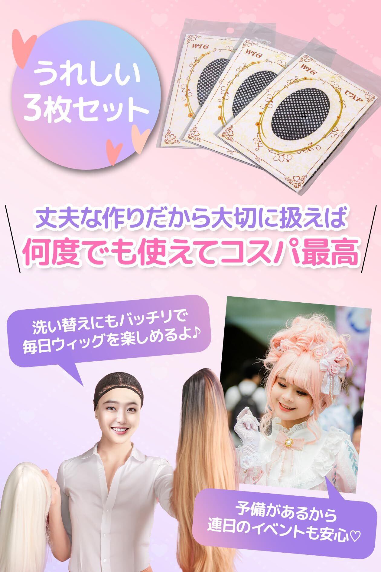 【洗い替えに便利な3枚入り。高コスパのウィッグ用必需品】ウィッグネット3枚セットで予備や洗い替えにも便利 日常使いからイベント用まで幅広く対応。お財布にやさしく耐久性のある素材で正しい取り扱いをすれば繰り返し使える高コスパ仕様です。