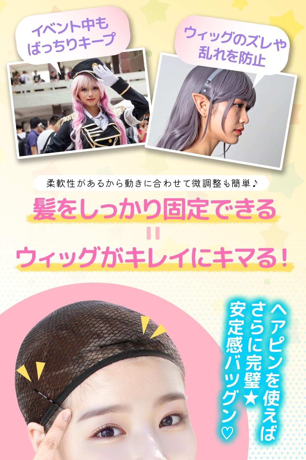 【動いても崩れにくい。安定感で差がつく】髪をしっかりとまとめウィッグのズレを防止。コスプレやイベント、ダンスなど動きの多い場面でも安心して使えるウィッグキャップ。ピンと併用することで一日中安定した装着感を実現します。