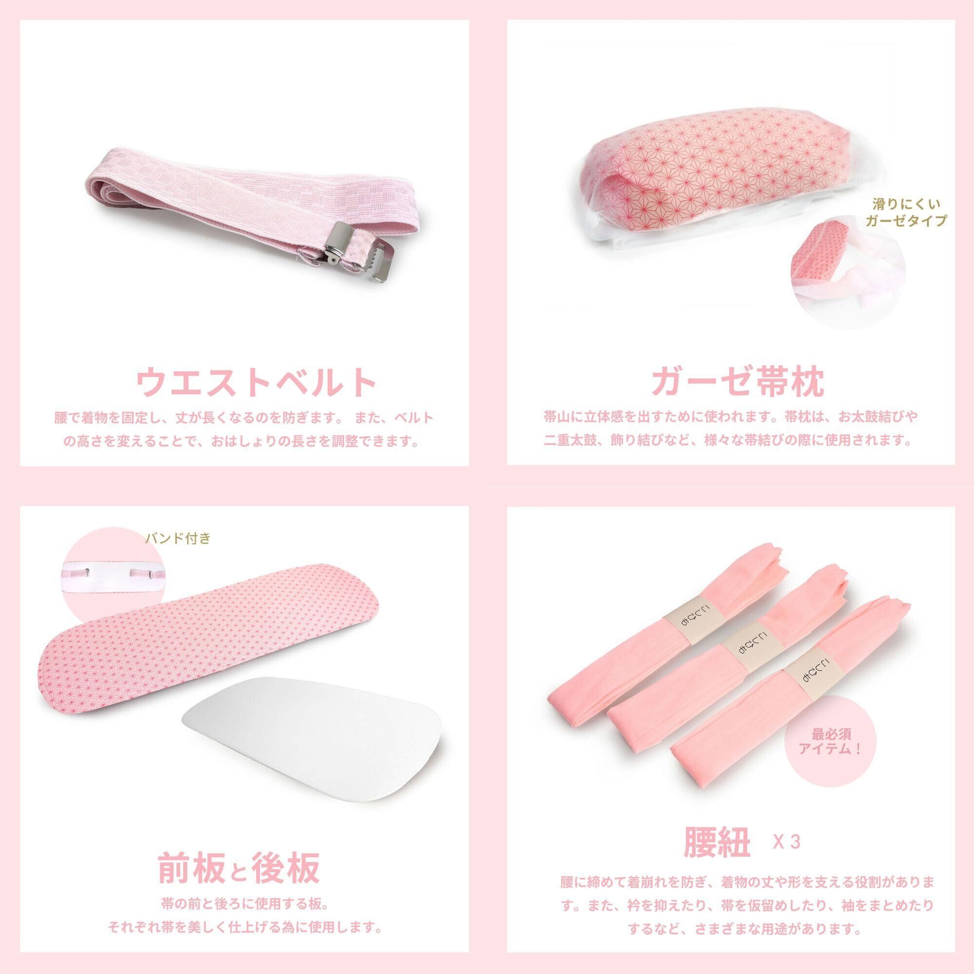 ・セット内容【計15点】 着物スリップ(S/M/L/LL) x1 帯まくらx1 着物ベルトx2 後板x1 マジックベルト×1 ウエストベルト×1 伊達〆×2 前板×1 腰紐×3 衿芯×2
