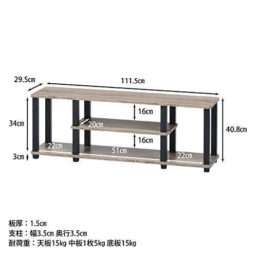 不二貿易 テレビ台 TVラック 49型対応 幅111.5×奥行29.5×高さ40.8cm ナチュラル ブラック 軽量 工具不要 組立商品 ロータイプ フィット 99913