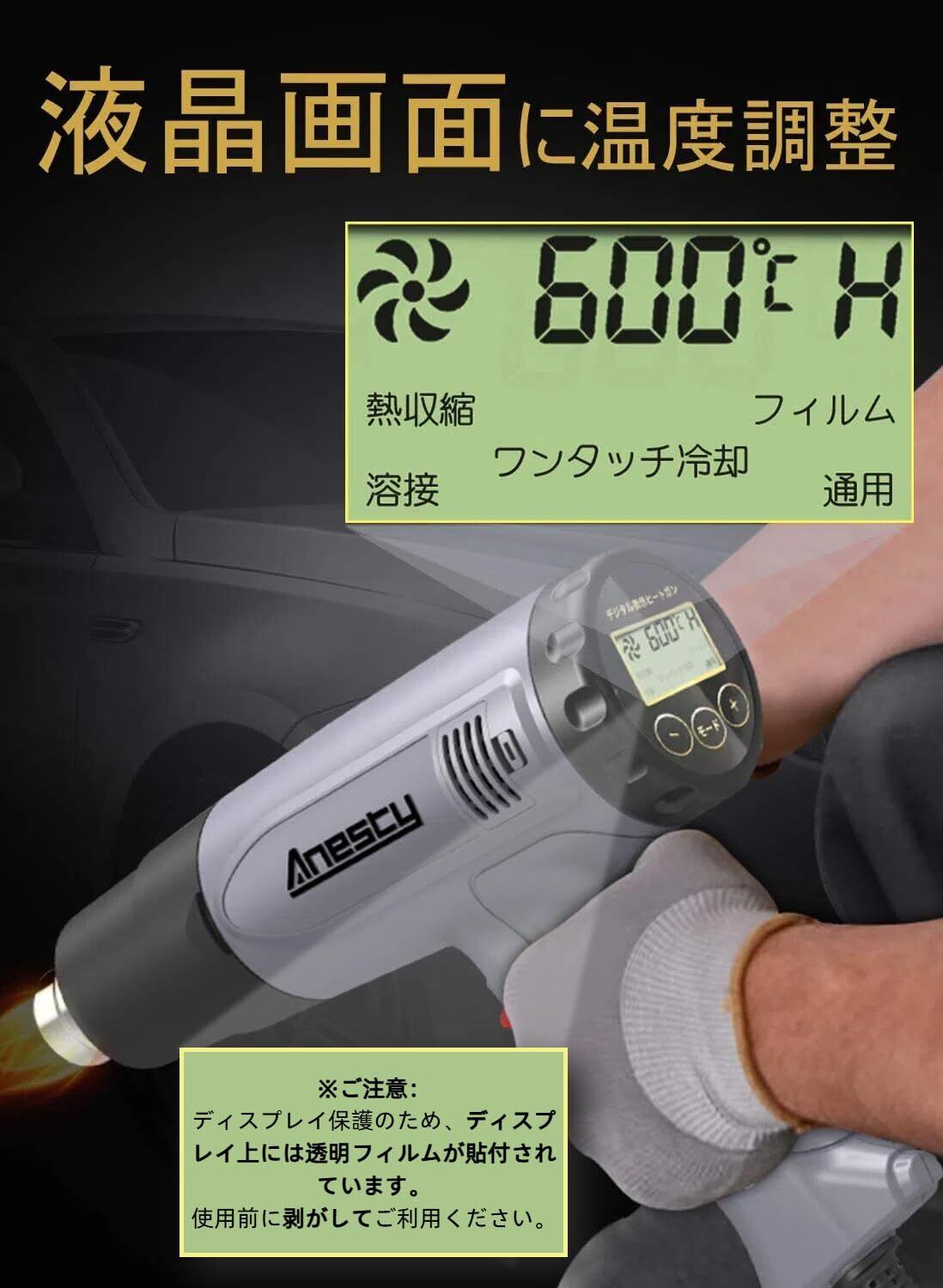 Anesty ヒートガン 液晶に温度調整 熱工具ヒートガン ヒートエアガン 冷却機能 ひーとがん 50-600℃ 2段階風速