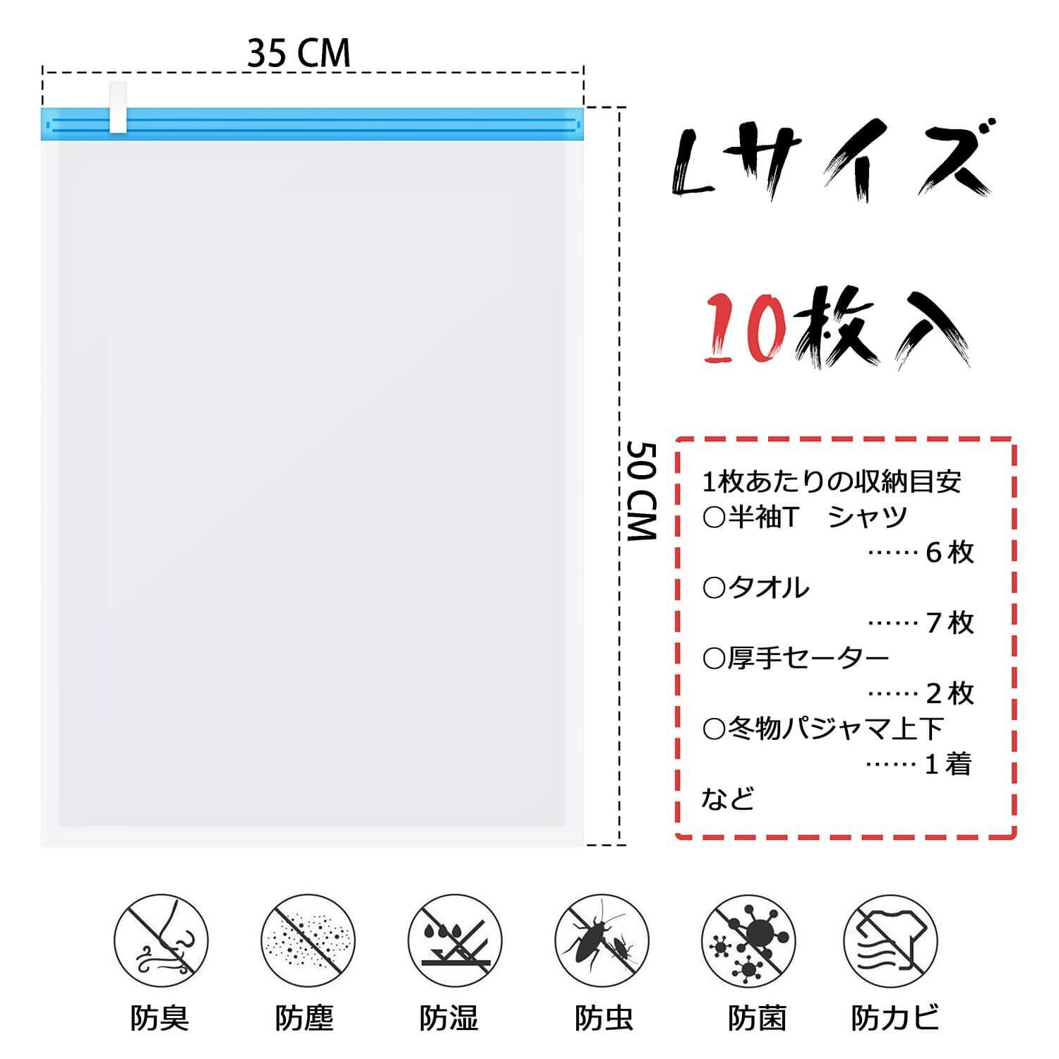 Love-KANKEI 圧縮袋 衣類圧縮袋 35*50cm 10枚組 掃除機不要 防塵防湿 防虫防カビ 繰り返し使用出来 衣替え収納/旅行/引越し/出張/家庭 Lサイズ