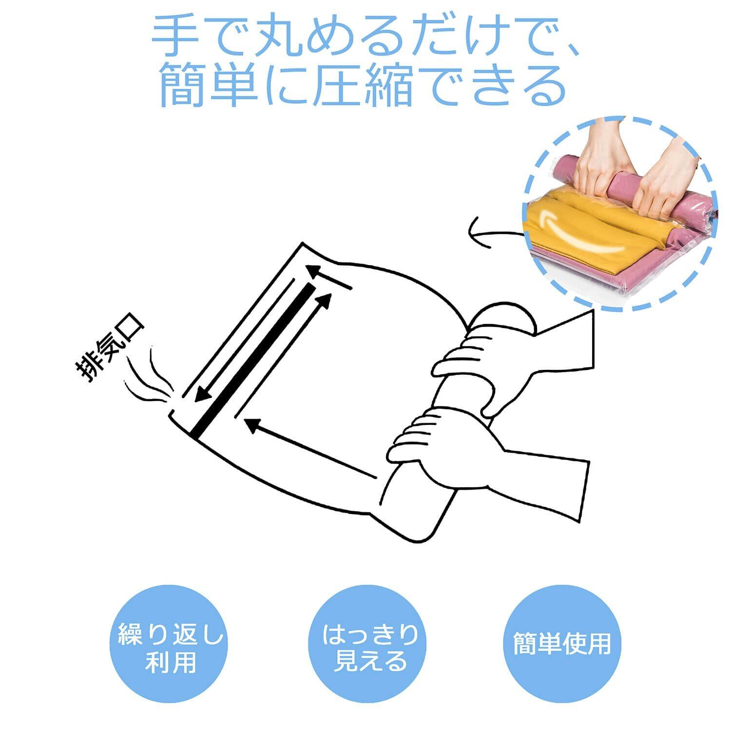【簡単便利】掃除機不要な圧縮袋で、手で簡単にクルクル巻けるから、時間かかりません。旅行、帰省や出張などのお供に、普段使いもおすすめです。