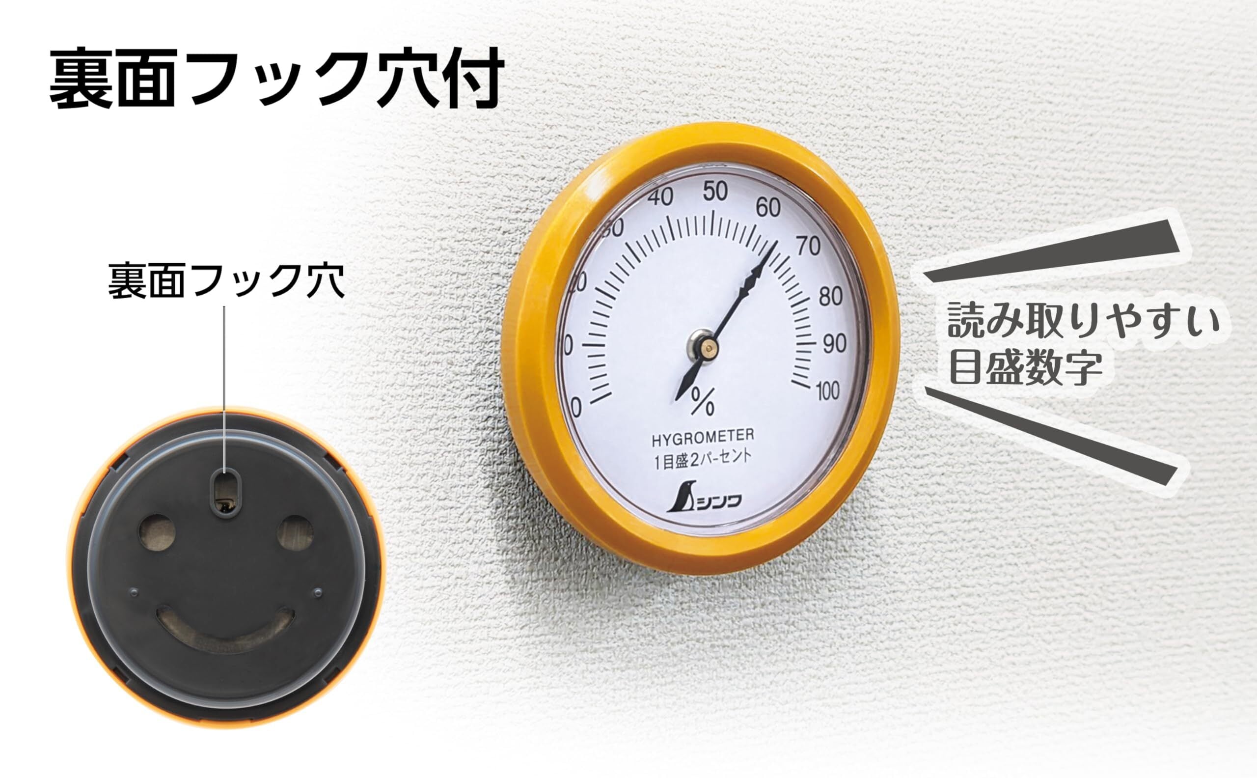 計量タイプの丸型湿度計です。読み取りやすい目盛数字タイプです。
