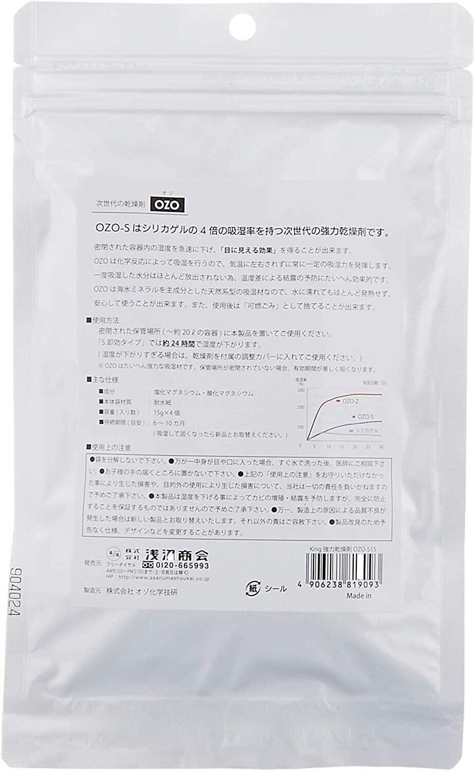 ●強力乾燥剤 OZO-S15 即効タイプは海水ミネラルを主成分とした天然系型の乾燥剤です。