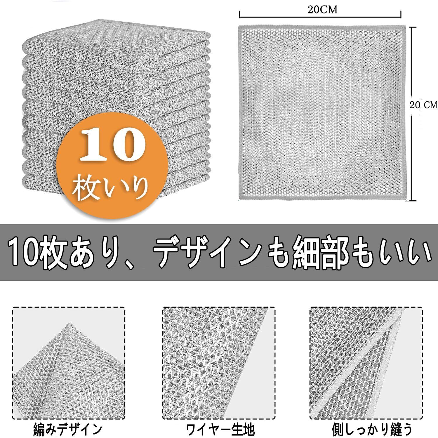 Ouliyoo ふきん 金属ワイヤーふきん 10枚入り キッチンタオル メッシュ クロス 食器/お皿/台所/浴槽洗い 抗菌 速乾 泡たて 油汚れ対策 多機能 家庭用 業務用 使い勝手が良い 20cm*20cm | BASE SHOP