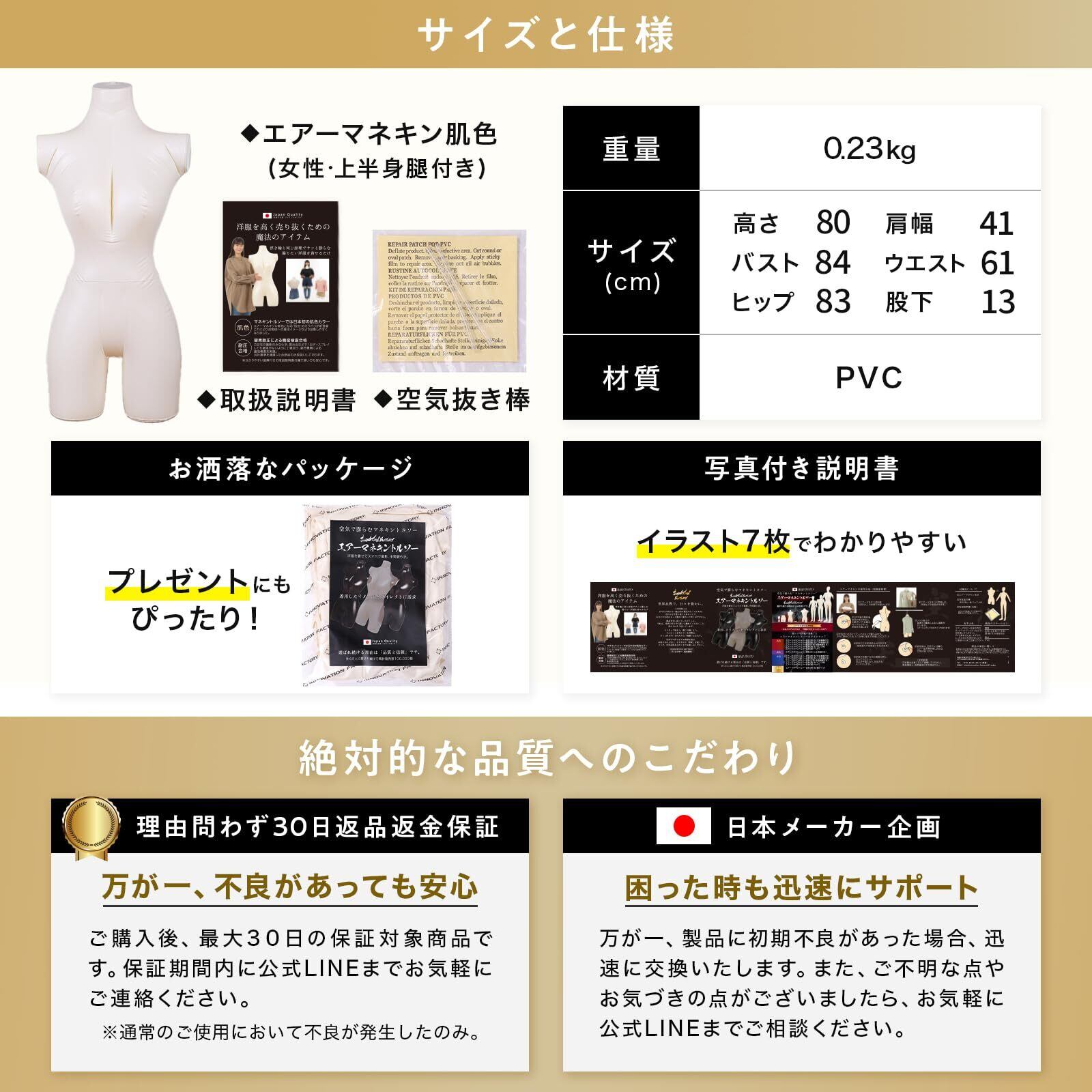 [ INNOVATION FACTORY ] エアー マネキン トルソー マネキン エアー トルソー ビニール マネキン リアル 等身大 ハンガー 服 上半身 全身 下半身 子供 女 男 空気式 撮影用 取説付 (上半身腿付き(女性), 肌色) | BASE SHOP