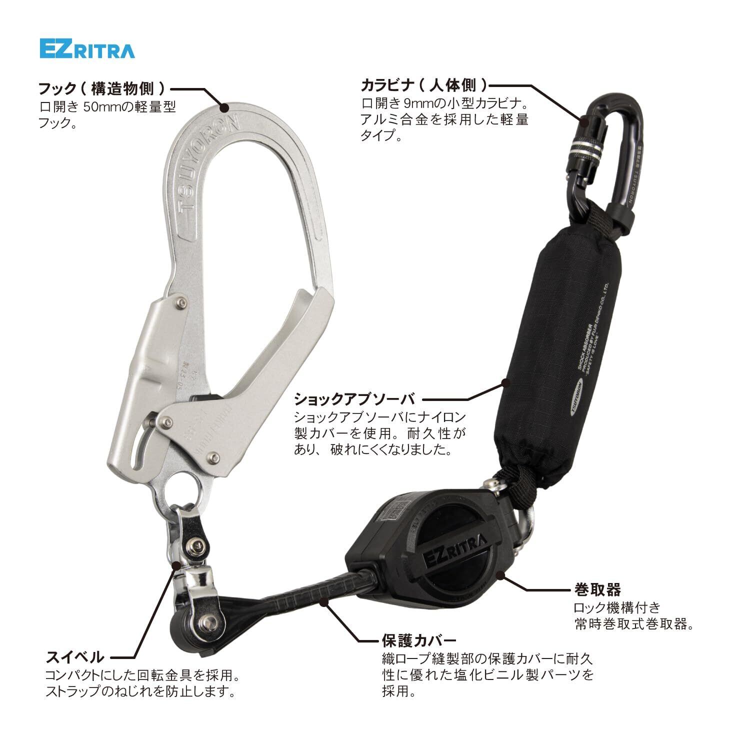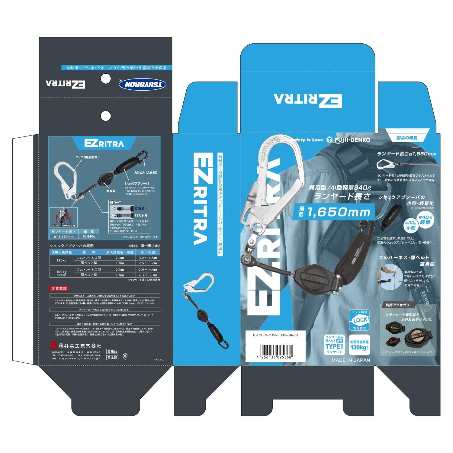 [藤井電工] 新規格 EZリトラ イージーリトラ フルハーネス/胴ベルト兼用型 ロック機構付き 巻取式 シングルランヤード 130KGまで対応 TL-EZ93SV-21KSG-130KG 1丁掛けランヤード ランヤード 兼用型 日本製 2023年モデル 高所作業 墜落制止用器具 フルハーネス 胴ベルト 安全帯 ツヨロン TSUYORON