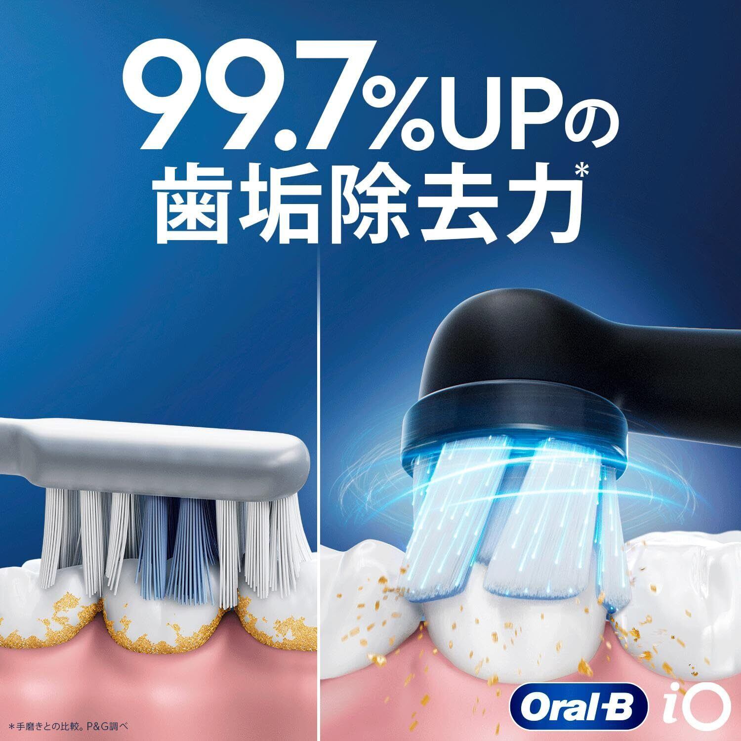 【歯垢除去力 99.7%UP】 手磨きとの比較。
