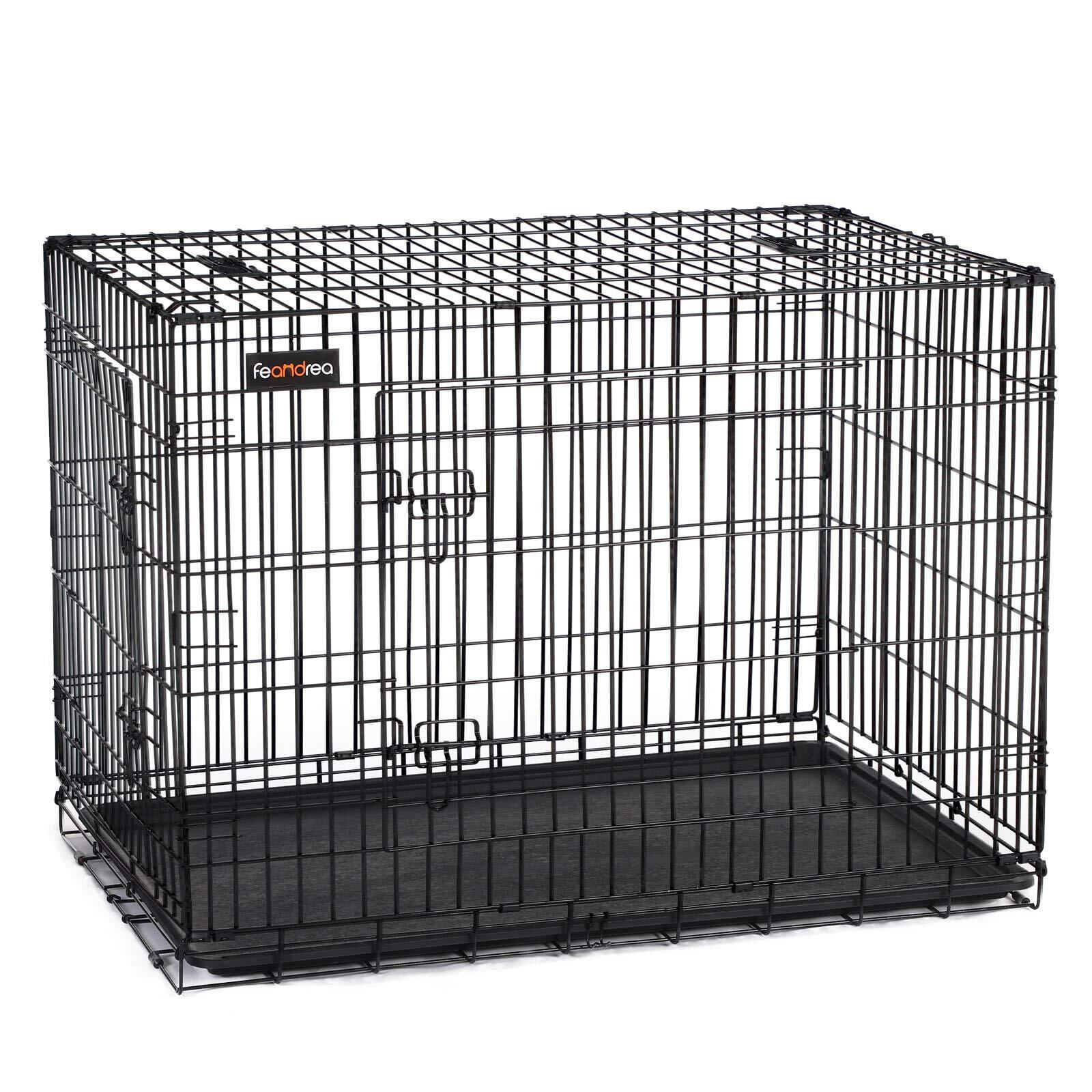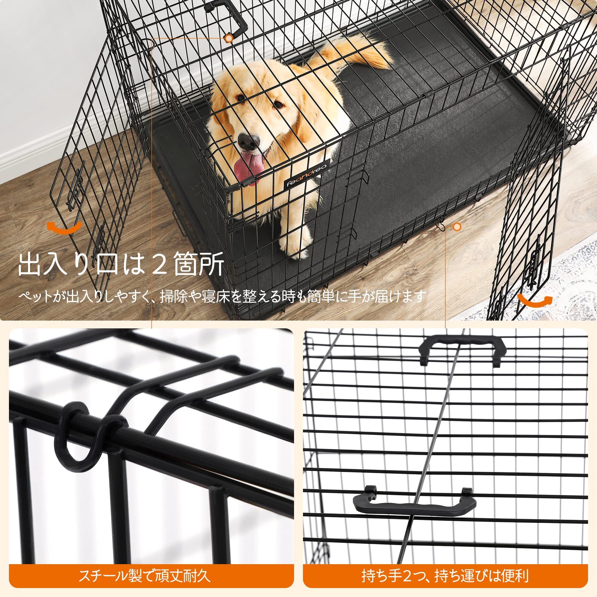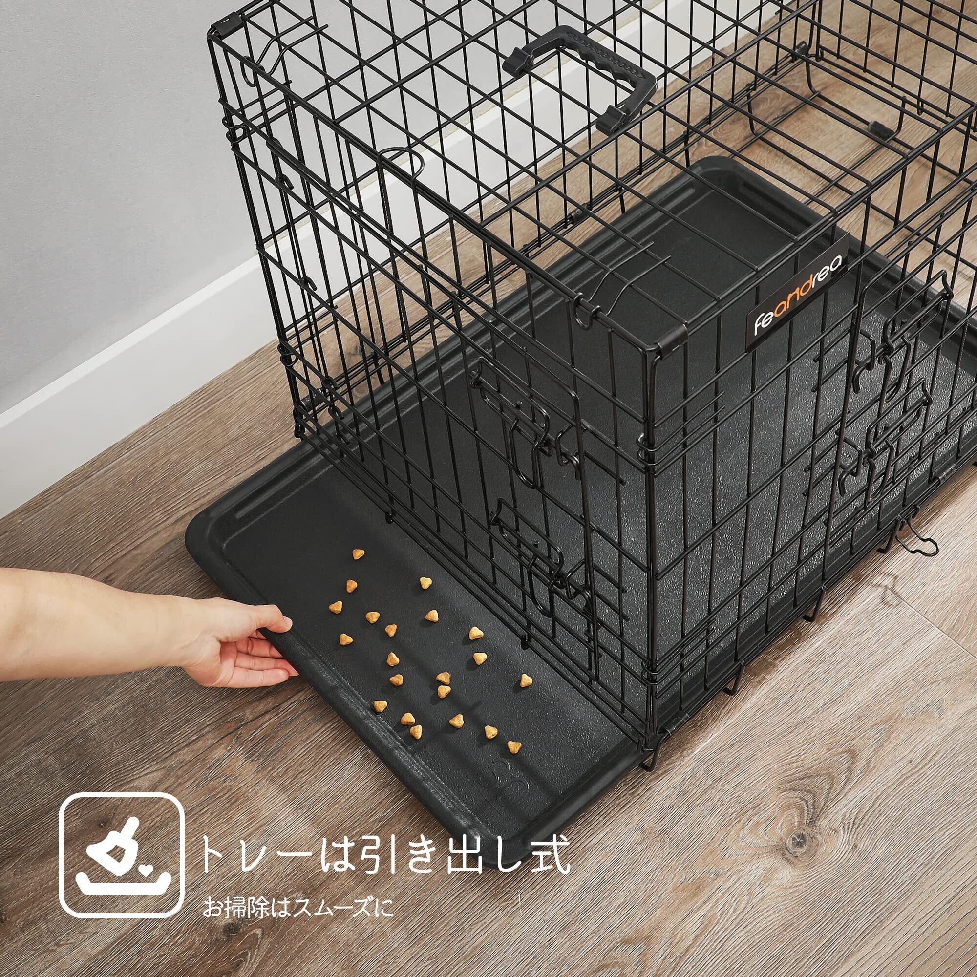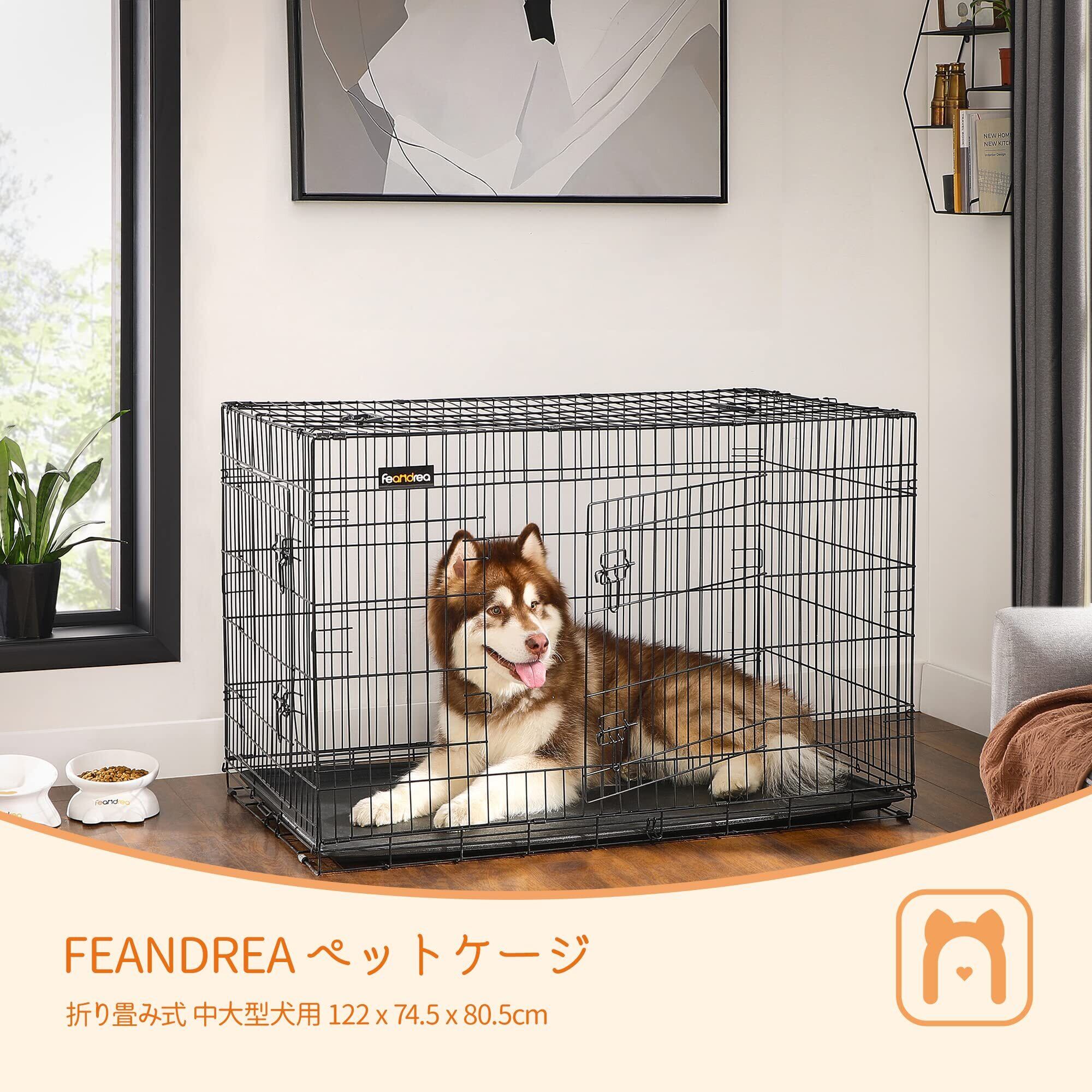FEANDREA 犬ケージ 中大型犬用 122x74.5x80.5cm 室内外兼用 ケージ 折り畳み式 持ち手付き 移動便利 トレー付き PPD48H