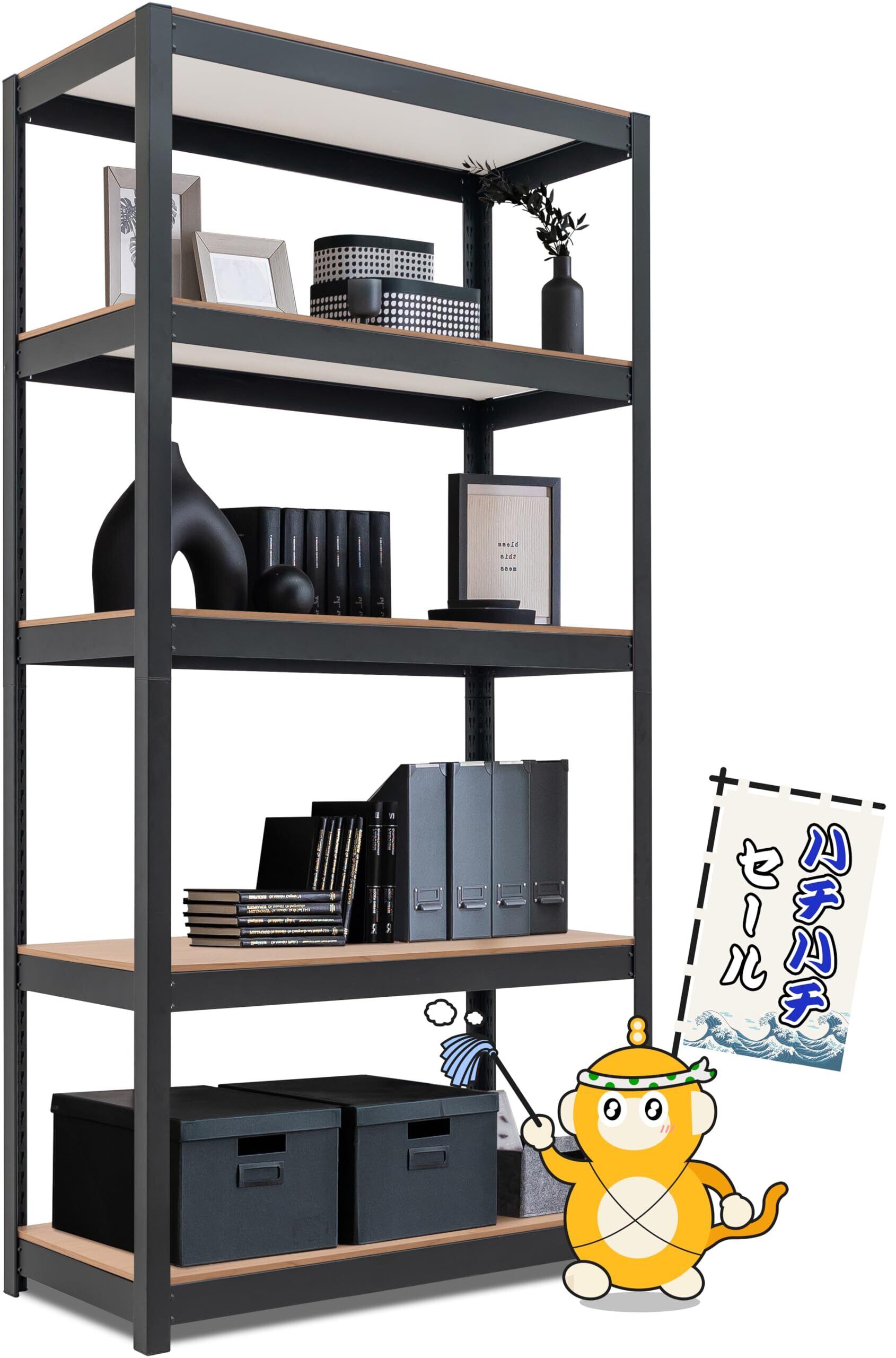 HOMEDANT House 組立簡単 ラミネート スチールラック キッチン 5段 幅90 奥行40 高さ180 ブラック ホームダント 高さ調整可能 棚 収納棚 メタルラック 倉庫 ガラージ オフィス 業務用 | BASE SHOP